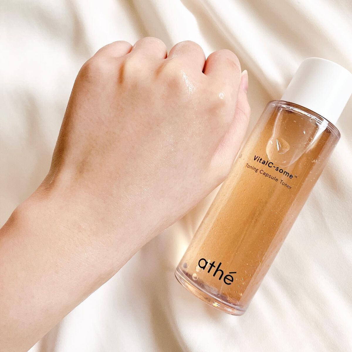 ビタミンCをカプセルに閉じ込めて、安定した状態でお肌に届けることのできるトナー。ぷつぷつとしたオレンジのカプセルが可愛らしいですね🥰 とろみがあって保湿力を感じるテクスチャ。ベタつきは無く、カプセルも馴染ませている間に自然に溶けていきます◎ 第3世代角質成分のPHA配合で敏感なお肌にも適した低刺激系。お肌ヨワヨワの方もOKです!