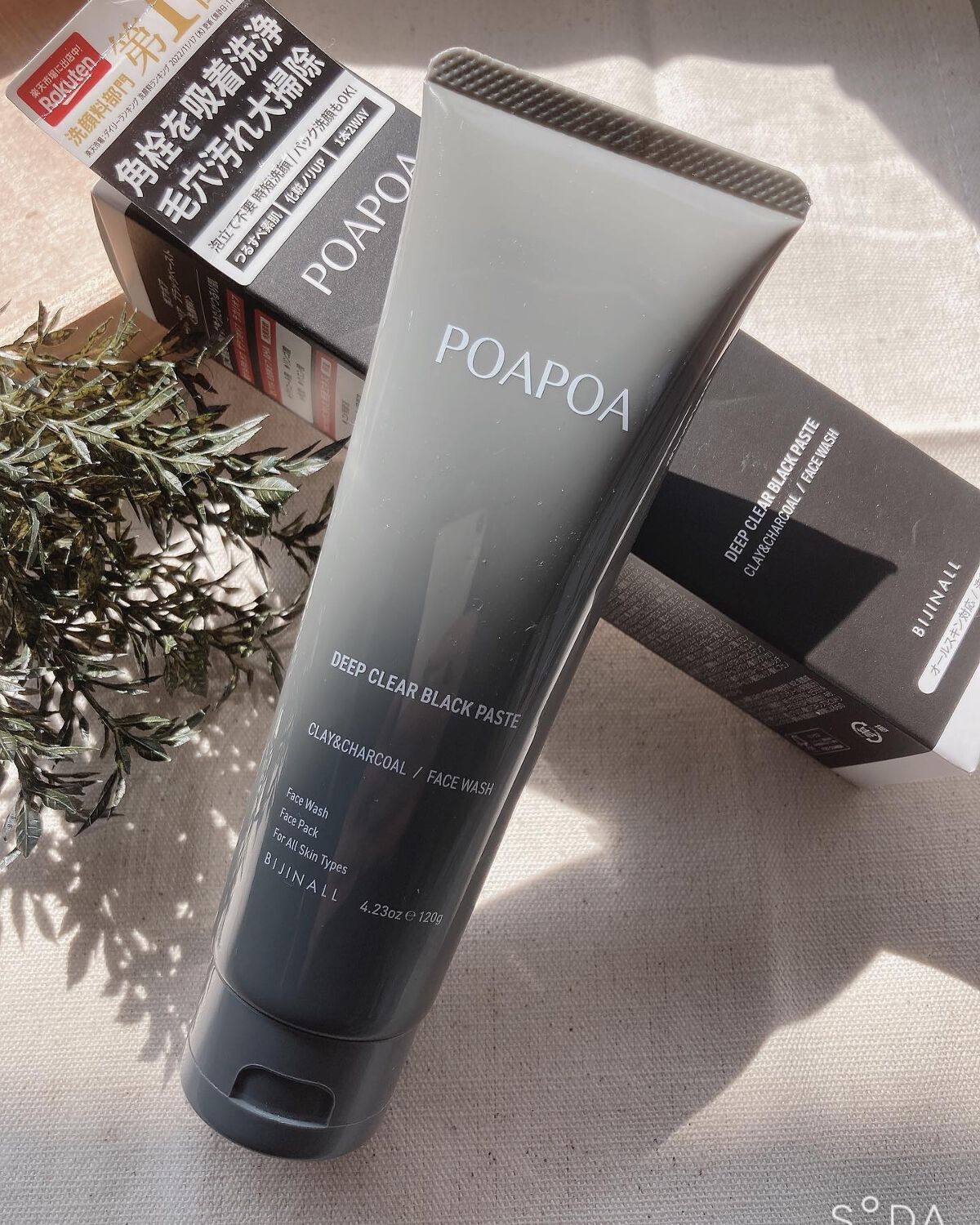 POAPOAディープクリアブラックペーストをお試ししました。泡立て不要で塗って流すだけなので簡単にお手入れできます。毛穴の黒ずみ汚れ対策に炭、Wビタミン配合で匂いもなく少量で肌全体に馴染みます。チューブから出る黒いペーストは炭の色で、顔に塗る...
