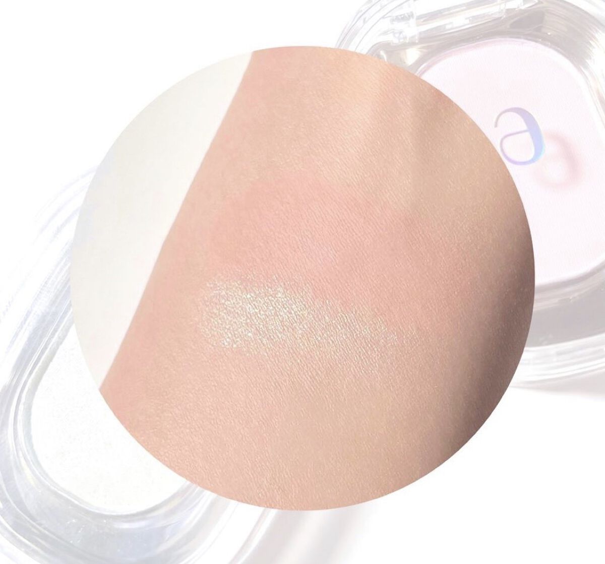 淡めな黄緑と細かいゴールドラメでピカッと光沢感があります。キラッキラなラメと言うよりは、シマーなタイプで偏光パールっぽい… すごく爽やかで目の中央に塗ると透明感爆誕します。目頭に塗るのも綺麗でした!! シャドウの質感はサラサラですがラメ落ちすることはなかったです。