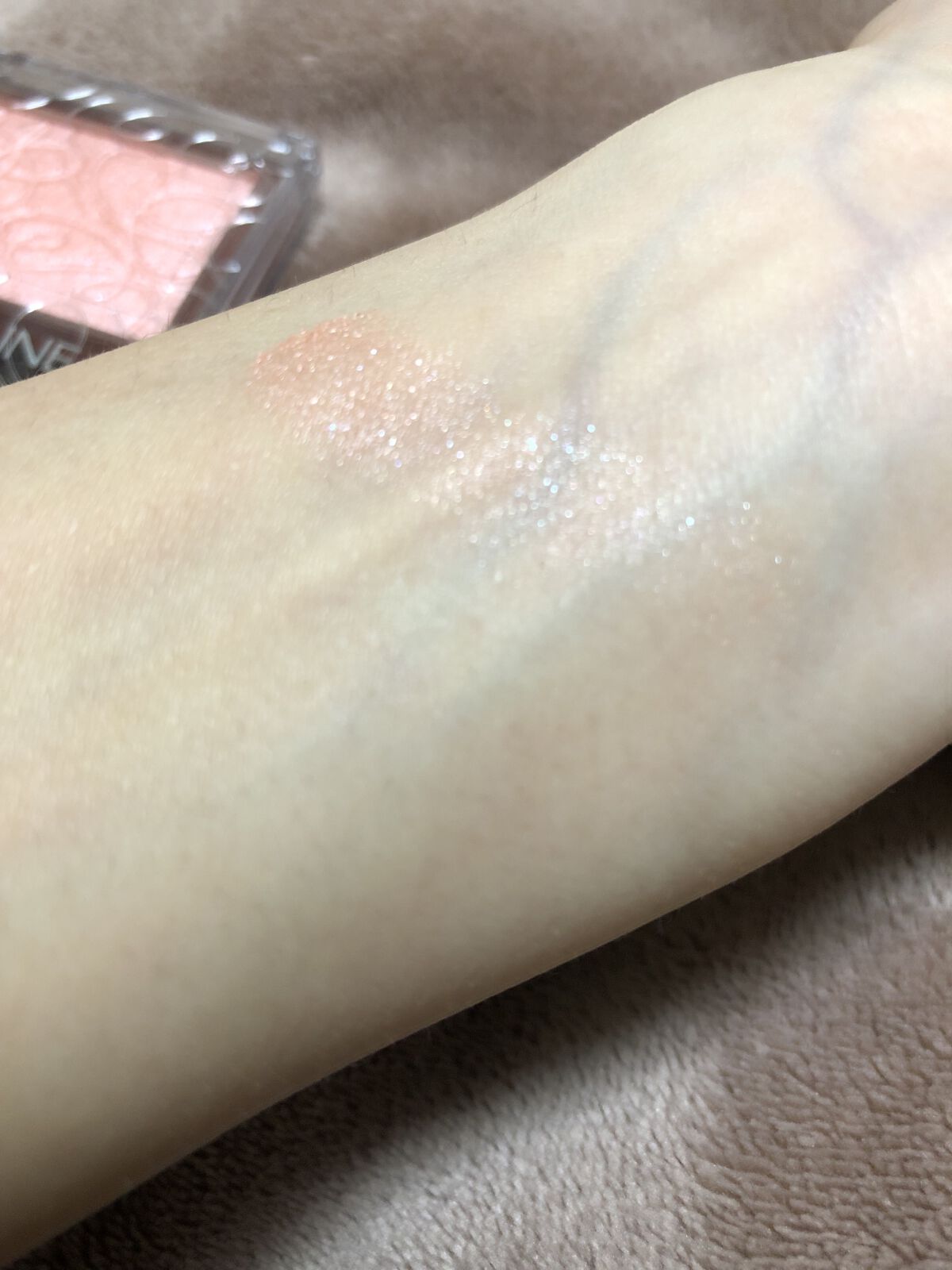指で取る前やっぱり青なのかなー? 薄めの水色!! アイホールへおっ!!!!! ブルベさん似合うと思います♪涙袋とかちょっとしたラメナチュラルにラメラメしたい時に良いです! ラメ自体は小さいのにも関わらず、小さな星みたいで素敵です…冬メイクにも使いたいな。