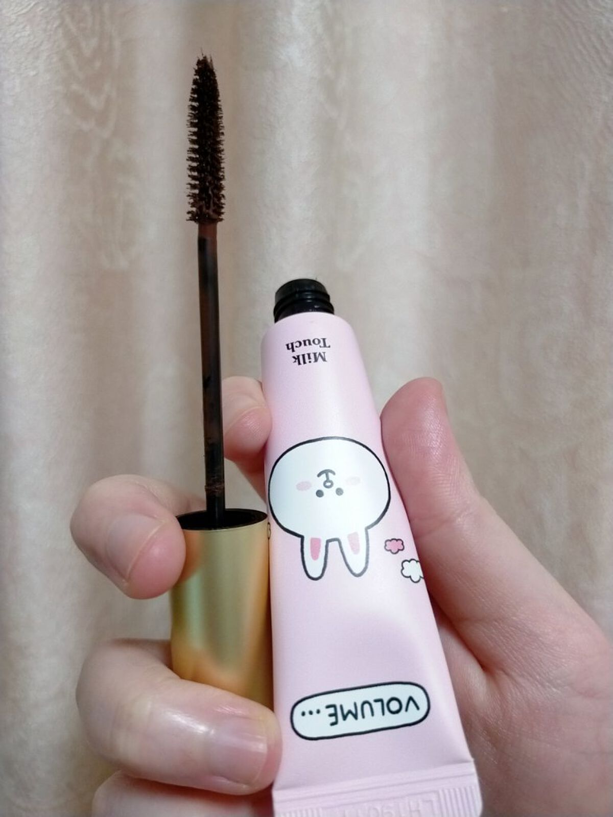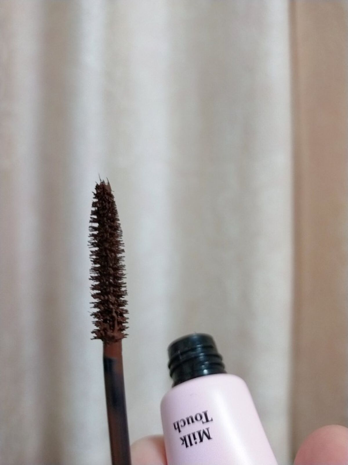 Milk Touch オールデイ ボリュームアンドカールマスカラです😌 細目のブラシで塗りやすく、ボリュームが出てカールアップもするなと思いました✨ 落ちにくいからちょっと落としにくさも感じました。 カールキープされる