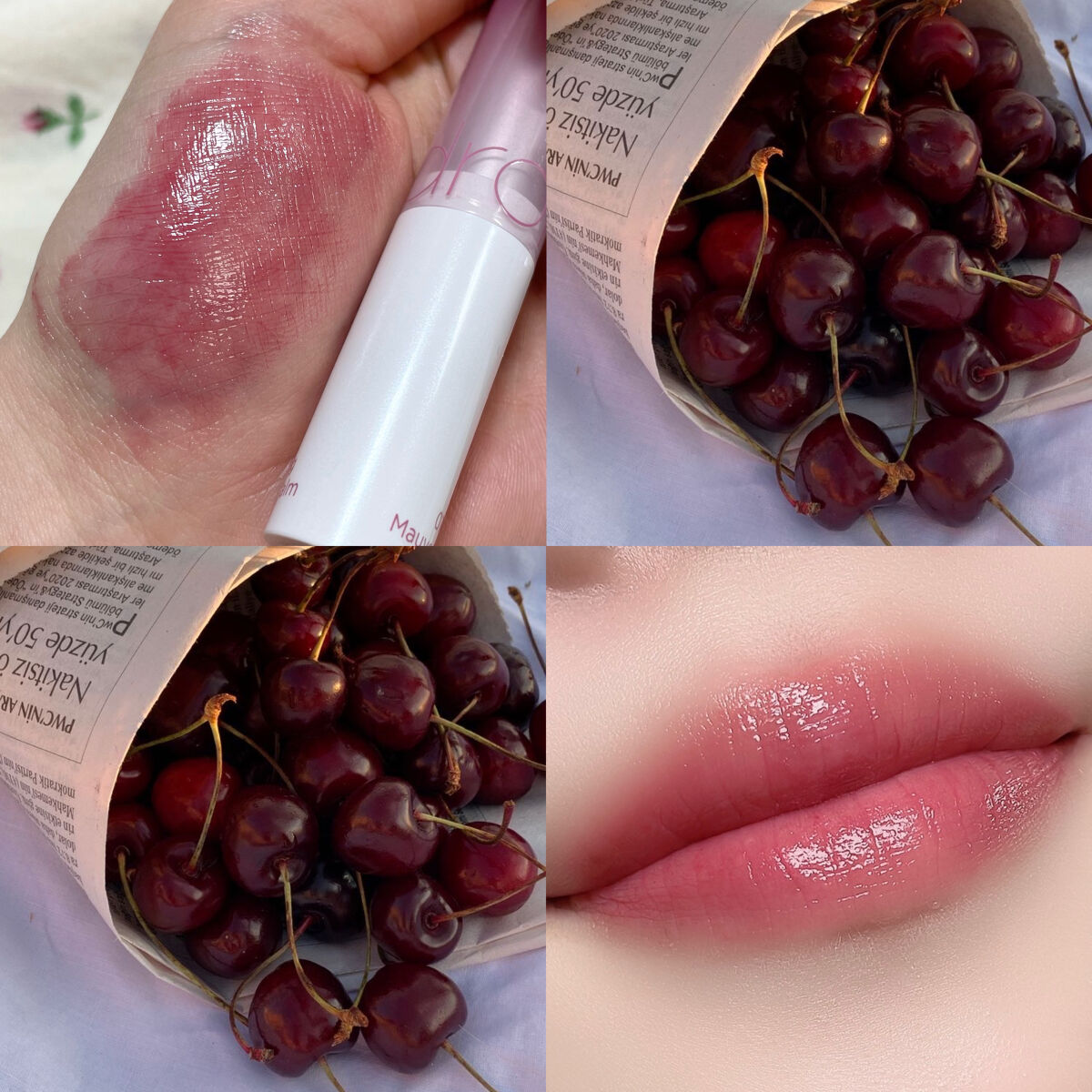 - もちっとした水膜で弾けそうなツヤリップ 1.軽い塗り心地のなめらかで透明な水爆弾ツヤ 2.塗った瞬間から唇を鮮やかに彩る多彩なカラーバーム 3.植物性保湿オイルでしっとりもっちり保湿バーム