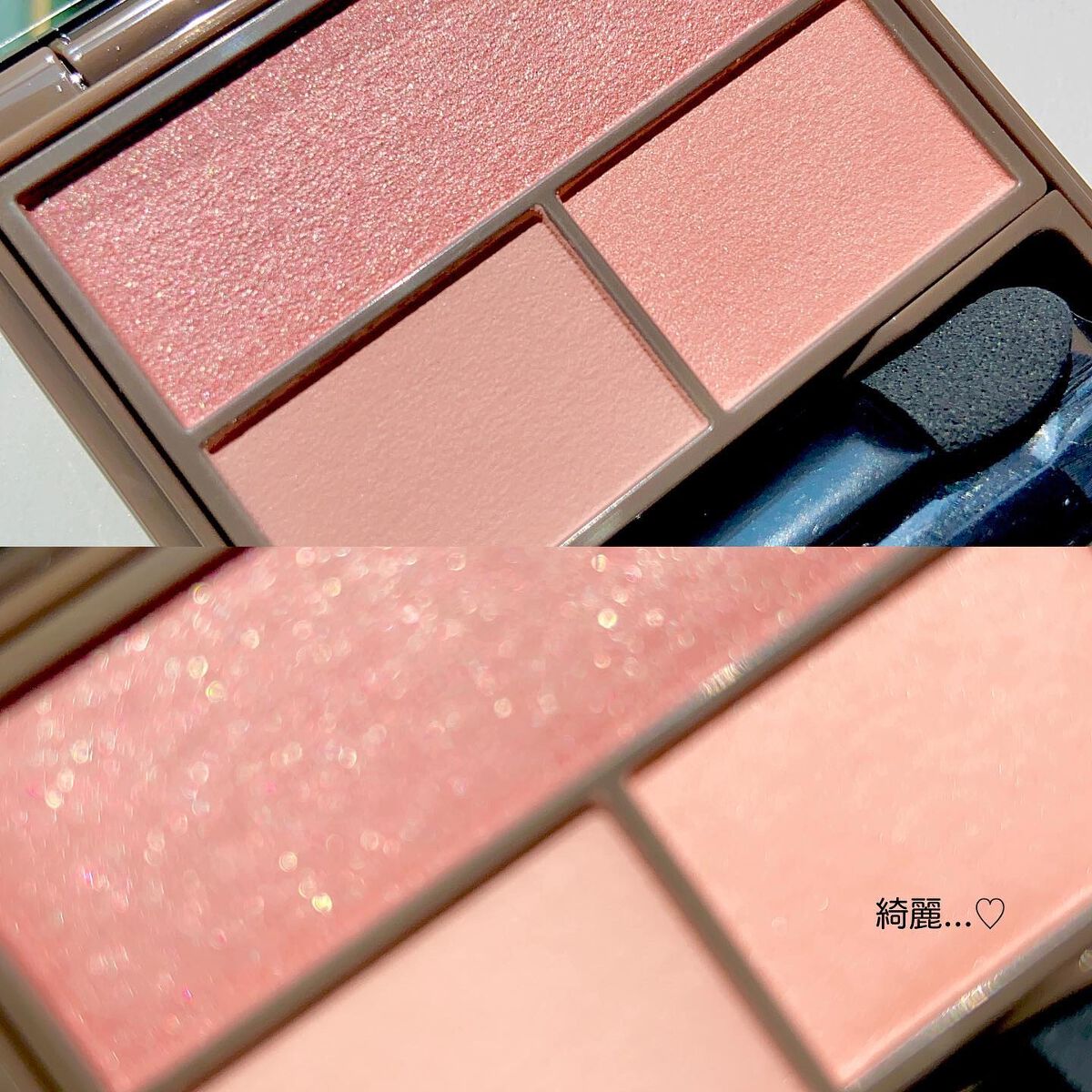 アイブロウとアイシャドウがこれ1個で完成 持ち運びに便利ですし荷物も減らせるのありがたいですね 見た目は明るいのですが塗ってみると使いやすかったです 気に入りすぎて毎日使いです。 大人も使いやすいピンクブラウン 私はWHOMEEの単色のラメと重ねたりして使ってます