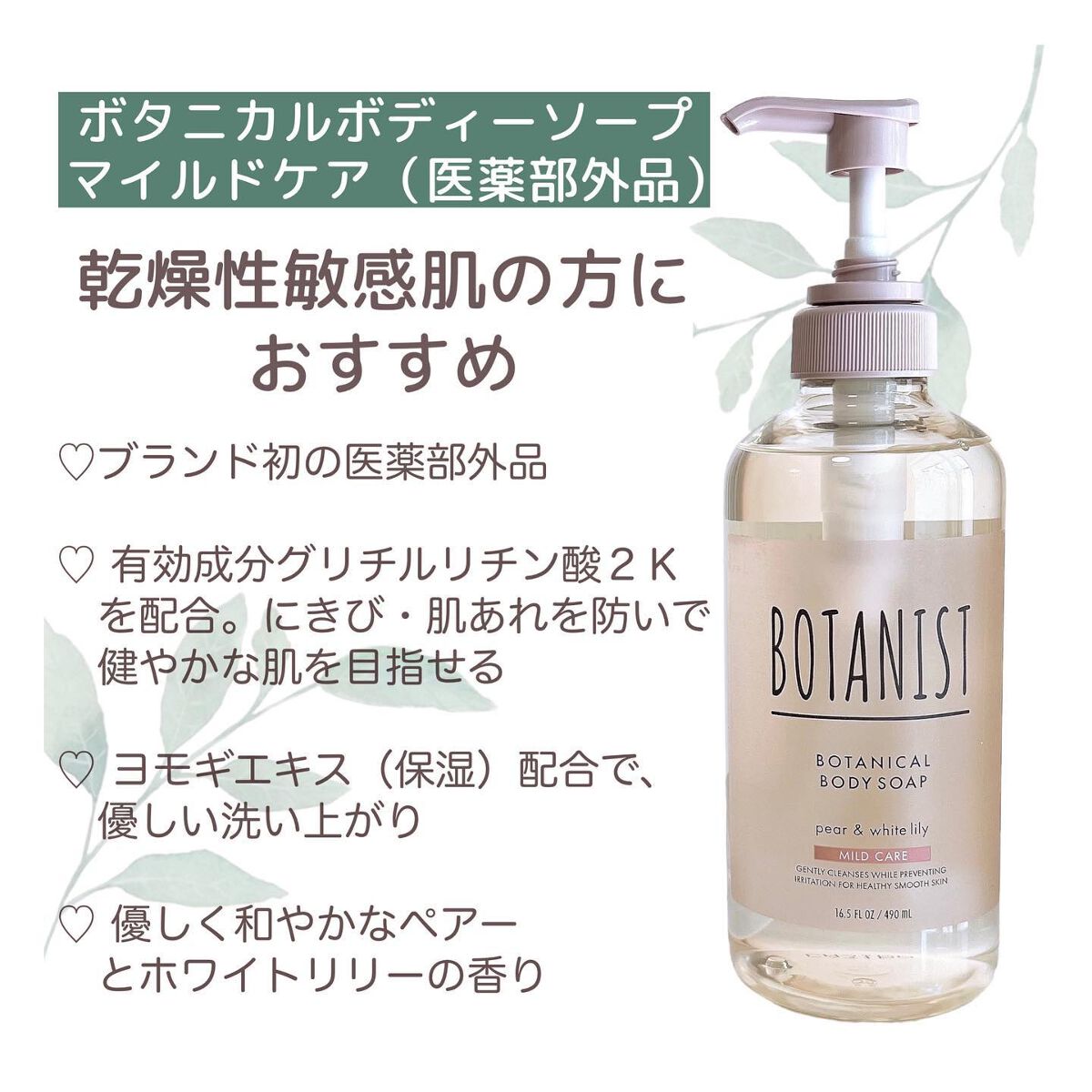 植物の恵みで、洗うたび、肌のキメ整うボディーソープ。しっとりと保湿しながら洗い、なめらかな素肌へ。 とにかく良い匂いすぎて、とっても癒される香りです☺️ネットで泡立てて使っていますが、少量で泡立ちがよく、しっとり洗えてスベスベになります🫧 植物由来の保湿成分「ボタニカルバターミルク」を配合。ボタニストボディーシリーズ共通のこだわり、リッチな保湿力となめらかな手触りで、洗いながら潤いをキープします。