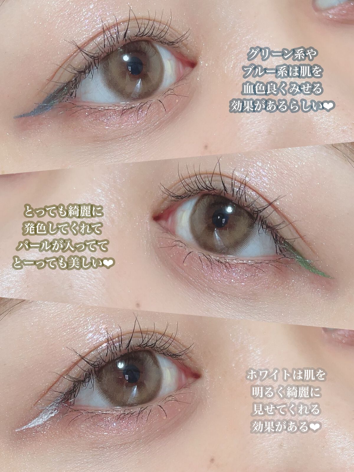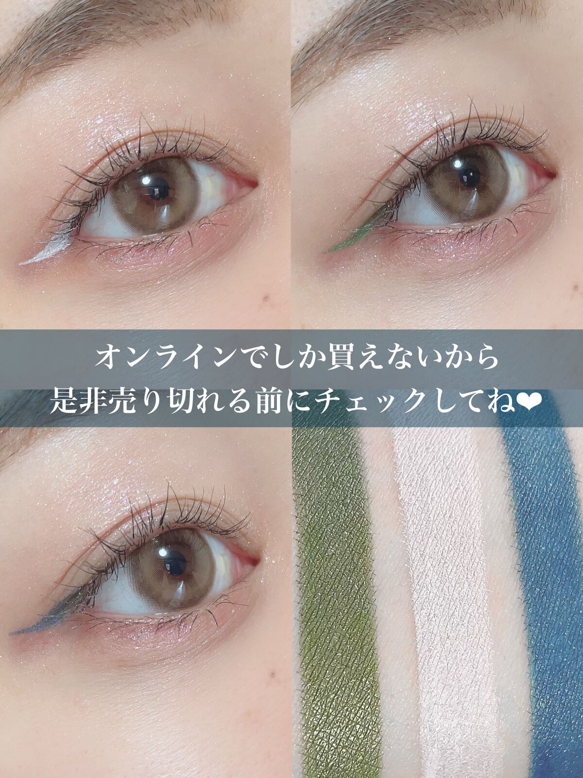 パール入りになっていてメタリックな質感でまぶたの動きに合わせてゆらゆら煌めきムードある目元が仕上がるみたいです🤔 汗や涙、こすれに強い耐久性アイライナーでお湯+洗顔料でオフ出来るみたいです😊 ラメじゃなくてパールなので繊細な感じの華やかさと輝きがあって日常使いもイベントメイクやカラーメイクなどいろんなメイクに使いやすいカラーかなと思いました😳