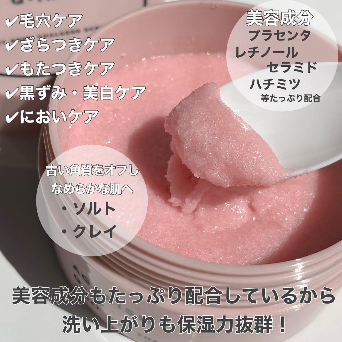 - 美容をもっとカジュアルに“AGARISM”とカワイイの欲望を知り尽くした雑誌sweetとのコラボ商品!女性のボディを魅力的にする重要なパーツ「お尻」。古い角質による黒ずみやザラツキ・乾燥ニキビ*などをケア。角質が気になるところにはスクラブとして、気になるデリケートゾーンは泡立てて全身ボディソープとしてOK。バスソルトとしても使える3WAYボディスクラブです。香りもやみつきになるフェロモンな香りにうっとりします! *洗浄によりニキビを防ぐ