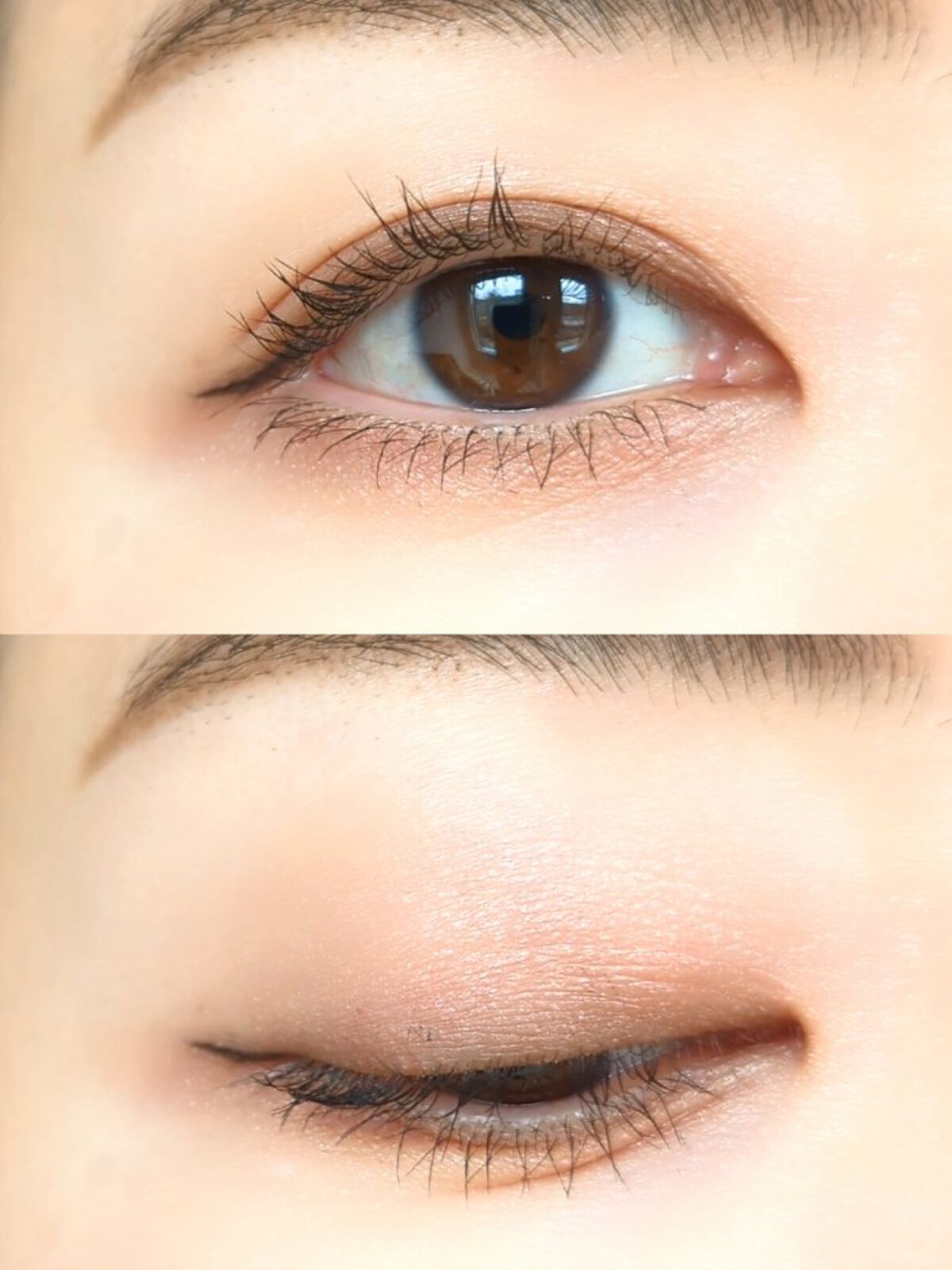 マットベージュをベースカラーにしてから、シルバーラメの入ったカーキを二重幅に。 下まぶたはパールが綺麗なピンクにしました✨ このパレットはラメ、マット、パールのバランスがとても良くて使いやすい! ナターシャは粉質も良く、ぼかしやすいです♡