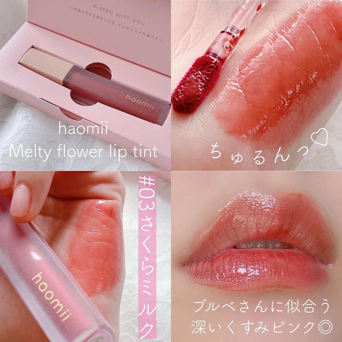 さくらミルクっていう名前も色味も質感も可愛い… 重ねるごとにくすみと深みが増すから楽しい♩ 透け感があってうるうる、ちゅるんとした水っぽい質感、私の大好物🥹♡!!! 色持ちも良くて、しかも落ち方も汚くない! でもさくらミルクは唯一?ブルベ夏の私もいけそうなカラーだなあとは思っていて、LOFT行った時にテスターを試したり悩んだりを繰り返していたところハオミーのプレゼントキャンペーンに当選していただきました😭😭😭♡ 他にはあまりないお洒落なカラーのティントが欲しい方、イエベの方には特におすすめのリップです💛