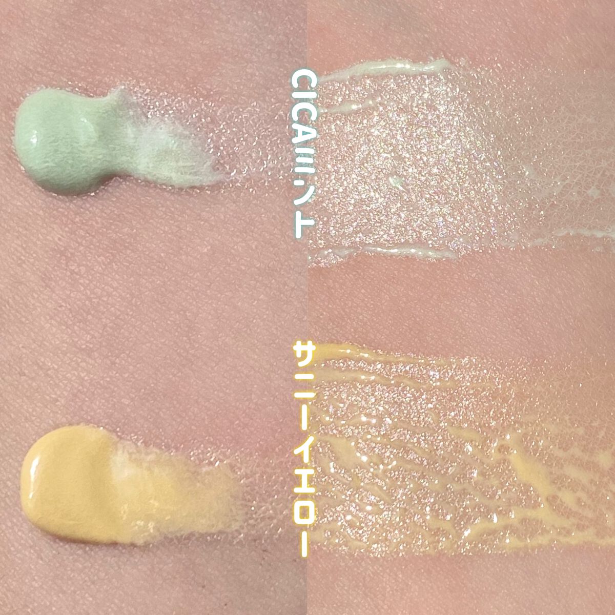 - <01 透明> 水、メトキシケイヒ酸エチルヘキシル、BG、ジエチルアミノヒドロキシベンゾイル安息香酸ヘキシル、酸化亜鉛、ラウリン酸メチルへプチル、酸化チタン、ジメチコン、(アクリル酸ヒドロキシエチル/アクリロイルジメチルタウリンNa)コポリマー、シクロペンタシロキサン、ビスエチルヘキシルオキシフェノールメトキシフェニルトリアジン、リンゴ酸ジイソステアリル、水酸化Al、PEG-60水添ヒマシ油、ステアリン酸、フェノキシエタノール、ポリグリセリル-3ポリジメチルシロキシエチルジメチコン、ポリヒドロキシステアリン酸、ホホバエステル、キサンタンガム、アルギニン、ヒアルロン酸Na、α-グルカン、フィチン酸、ユキノシタエキス、グルコシルセラミド、ソメイヨシノ葉エキス、ハトムギ種子エキス、マグワ根皮エキス、メマツヨイグサ種子エキス、酸化銀、セイヨウナツユキソウ花エキス、ビルベリー葉エキス、アーチチョーク葉エキス <02 ホワイト> 水、メトキシケイヒ酸エチルヘキシル、BG、酸化チタン、ジエチルアミノヒドロキシベンゾイル安息香酸ヘキシル、酸化亜鉛、ラウリン酸メチルへプチル、ジメチコン、(アクリル酸ヒドロキシエチル/アクリロイルジメチルタウリンNa)コポリマー、シクロペンタシロキサン、ビスエチルヘキシルオキシフェノールメトキシフェニルトリアジン、リンゴ酸ジイソステアリル、オクチルドデカノール、水酸化Al、PEG-60水添ヒマシ油、ポリグリセリル-3ポリジメチルシロキシエチルジメチコン、ステアリン酸、フェノキシエタノール、ポリヒドロキシステアリン酸、ホホバエステル、キサンタンガム、トリヒドロキシステアリン、アルミナ、シリカ、アルギニン、ヒアルロン酸Na、α-グルカン、フィチン酸、ユキノシタエキス、グルコシルセラミド、ソメイヨシノ葉エキス、ハトムギ種子エキス、マグワ根皮エキス、メマツヨイグサ種子エキス、酸化銀、セイヨウナツユキソウ花エキス、ビルベリー葉エキス、アーチチョーク葉エキス <C01 CICAミント> 水、メトキシケイヒ酸エチルヘキシル、BG、ジエチルアミノヒドロキシベンゾイル安息香酸ヘキシル、酸化チタン、酸化亜鉛、ラウリン酸メチルへプチル、ジメチコン、(アクリル酸ヒドロキシエチル/アクリロイルジメチルタウリンNa)コポリマー、シクロペンタシロキサン、ビスエチルヘキシルオキシフェノールメトキシフェニルトリアジン、リンゴ酸ジイソステアリル、オクチルドデカノール、水酸化Al、PEG-60水添ヒマシ油、ポリグリセリル-3ポリジメチルシロキシエチルジメチコン、ステアリン酸、フェノキシエタノール、ポリヒドロキシステアリン酸、ホホバエステル、香料、キサンタンガム、酸化鉄、グンジョウ、トリヒドロキシステアリン、アルミナ、トリイソステアリン酸ポリグリセリル-2、青1、シリカ、アルギニン、ヒアルロン酸Na、α-グルカン、フィチン酸、ユキノシタエキス、グルコシルセラミド、ソメイヨシノ葉エキス、酸化銀、ハトムギ種子エキス、マグワ根皮エキス、メマツヨイグサ種子エキス、トコフェロール、セイヨウナツユキソウ花エキス、ビルベリー葉エキス、ツボクサ葉エキス、アーチチョーク葉エキス <C03 ピュアパープル> 水、メトキシケイヒ酸エチルヘキシル、BG、酸化チタン、ジエチルアミノヒドロキシベンゾイル安息香酸ヘキシル、酸化亜鉛、ラウリン酸メチルへプチル、ジメチコン、(アクリル酸ヒドロキシエチル/アクリロイルジメチルタウリンNa)コポリマー、シクロペンタシロキサン、エチルヘキサン酸セチル、ビスエチルヘキシルオキシフェノールメトキシフェニルトリアジン、リンゴ酸ジイソステアリル、オクチルドデカノール、水酸化Al、PEG-60水添ヒマシ油、ポリグリセリル-3ポリジメチルシロキシエチルジメチコン、ステアリン酸、フェノキシエタノール、ポリヒドロキシステアリン酸、ホホバエステル、トリイソステアリン酸ポリグリセリル-2、キサンタンガム、トリヒドロキシステアリン、青1、赤226、アルミナ、ナイアシンアミド、シリカ、アルギニン、ヒアルロン酸Na、α-グルカン、フィチン酸、ユキノシタエキス、グルコシルセラミド、ソメイヨシノ葉エキス、マグワ根皮エキス、酸化銀、ハトムギ種子エキス、メマツヨイグサ種子エキス、セイヨウナツユキソウ花エキス、ビルベリー葉エキス、アーチチョーク葉エキス <C02 サニーイエロー> 水、メトキシケイヒ酸エチルヘキシル、BG、酸化チタン、ジエチルアミノヒドロキシベンゾイル安息香酸ヘキシル、酸化亜鉛、ラウリン酸メチルへプチル、ジメチコン、(アクリル酸ヒドロキシエチル/アクリロイルジメチルタウリンNa)コポリマー、シクロペンタシロキサン、ビスエチルヘキシルオキシフェノールメトキシフェニルトリアジン、リンゴ酸ジイソステアリル、オクチルドデカノール、水酸化Al、PEG-60水添ヒマシ油、ポリグリセリル-3ポリジメチルシロキシエチルジメチコン、酸化鉄、ステアリン酸、フェノキシエタノー