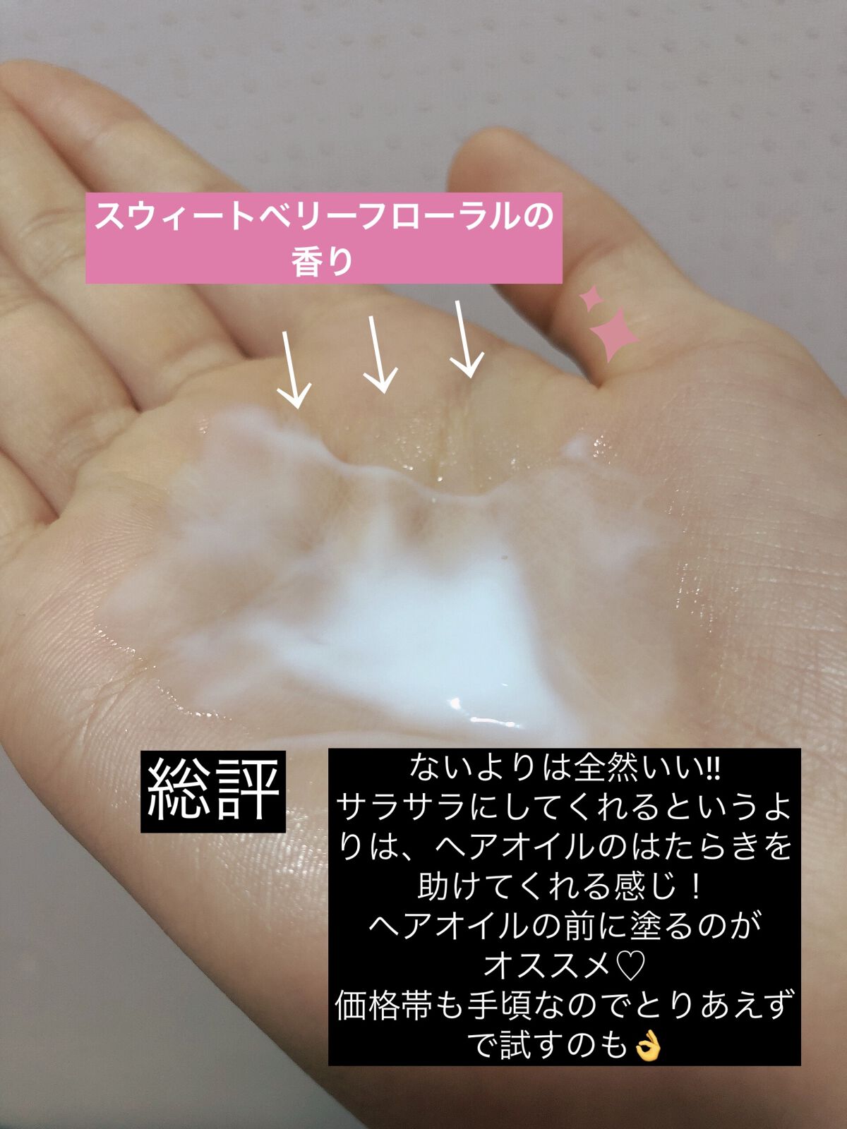 | ヘアケア・スタイリングランキング第31位 | 普通〜太めの髪用のミルク。とにかく香りが甘くて良い匂いで髪のまとまりが出ていい感じです😆 | 詳細を見る | |