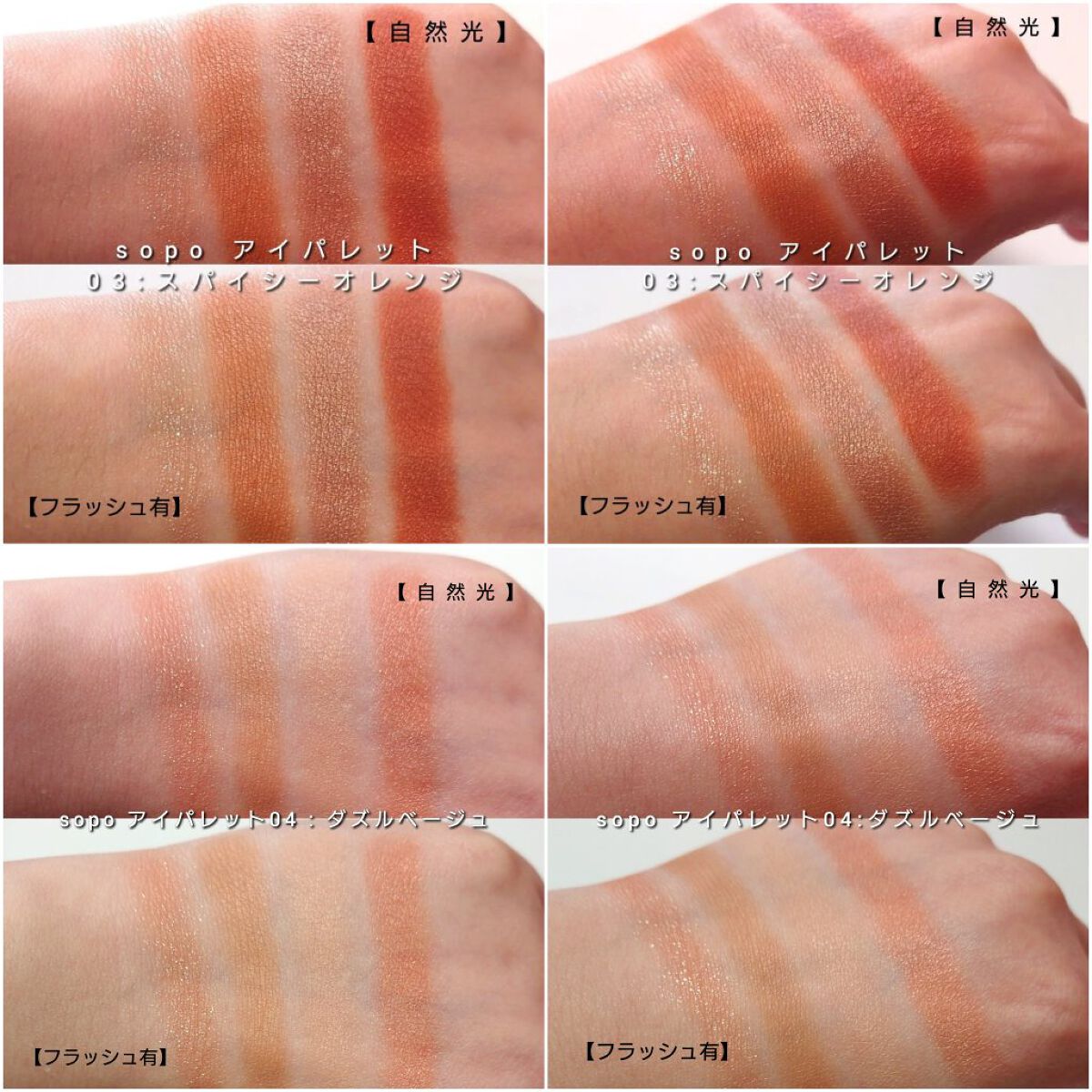 【#SOPO】#sopoアイパレット04#ダズルベージュ自然な陰影を引き出す下段2色のマットな透け感ベージュがポイント。左上には温かく輝くコーラル×ゴールドのラメ、右上には繊細なパールを配置し、様々な質感と色の組み合わせが楽しめるアイパレット...