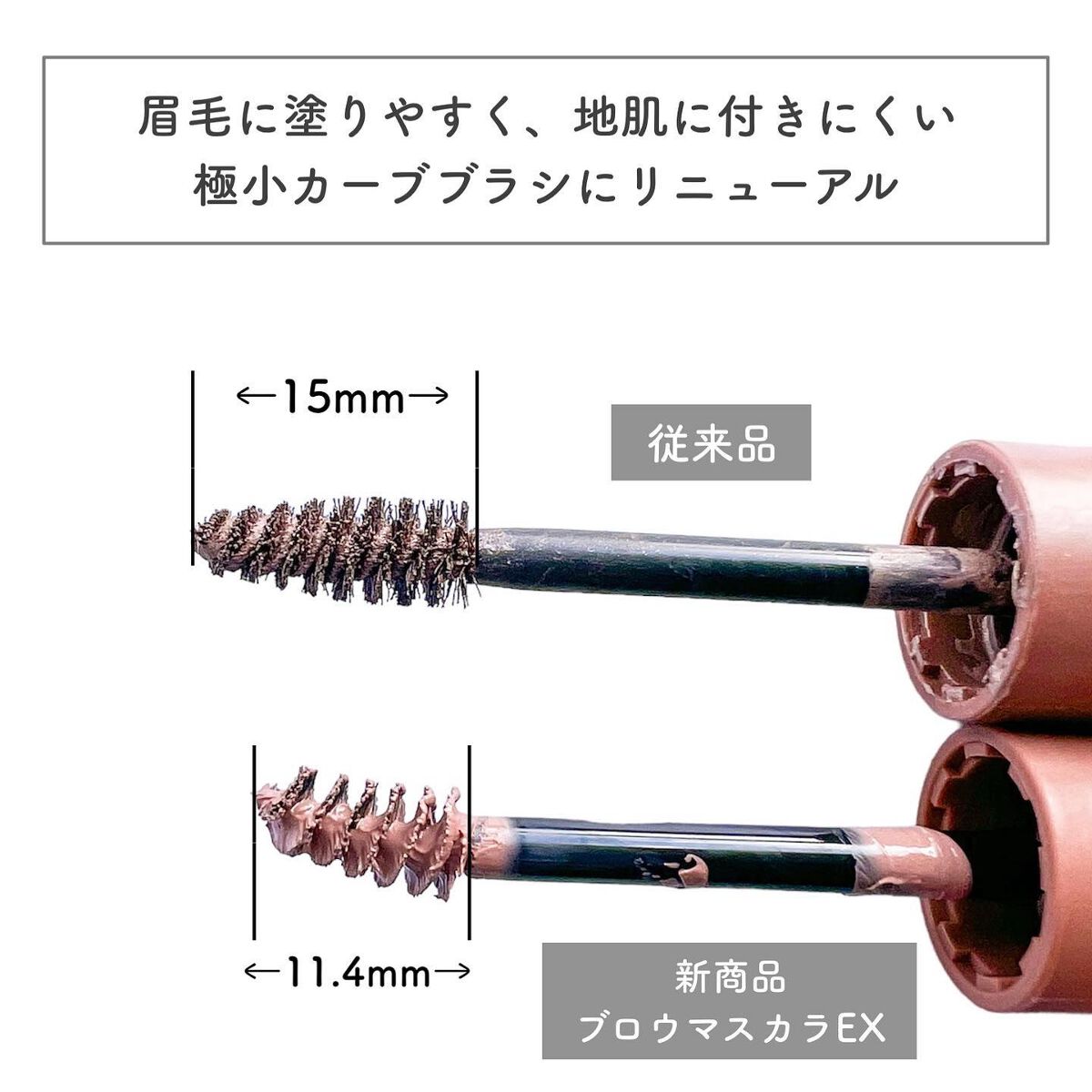 - 絶妙ニュアンスカラー 固めずふんわりなじむ 眉マスカラ ●眉尻などの細かいところまで塗りやすいスリムなツリー型ブラシ ●色づくのに固まらず、ふわりと仕上がる ●汗、皮脂に強く、美しい仕上がりが長時間持続 ●お湯で落とせる ●美容液成分配合/毛髪トリートメント(アミノ酸)、毛髪保湿成分(ヒアルロン酸)配合 <使い方> ●はじめに、眉毛の流れと逆方向に、次に、眉毛の流れに沿って根もとから毛先方向にとかすようにして塗布します。 ●ペンシルタイプやパウダータイプのアイブローと併用する場合は、最後に本品をご使用ください。 ●ブラシの液のつきが多い場合は、容器の口もとで液を調整してからお使い下さい。 ●単品でご使用の場合は、お湯で落とせます。 ●ご使用後は容器の口もとをきれいに拭き、必ずキャップをきちんと閉めてください。容器の口もとに液がついたままキャップを閉めると、キャップが閉まらなくなったり、まれに中栓が外れる場合があります。 ●水や化粧水で薄めると、変質することがありますので、絶対に薄めないでください。 ●日のあたるところや高温のところにおかないでください。 ●衣類などにつくと落ちませんので、ご注意ください。