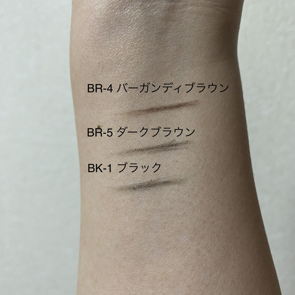 - <ライトブラウン> 水添パーム油、合成モクロウ、窒化ホウ素、シリ カトリ脂肪酸(C10-18) グリセリル、ステアリン酸亜 鉛、トコフェロール、レシチン、パルミチン酸アスコルビ ル、ステアリン酸グリセリル、オレイン酸グリセリル、ク エン酸、酸化鉄、酸化チタン、黄4 <アッシュブラウン> 水添パーム油、合成モクロウ、窒化ホウ素、シリ カ トリ脂肪酸(C10-18)グリセリル、ステアリン酸亜鉛、トコフェロール、レシチン、パルミチン酸アスコルビル、ステアリン酸グリセリル、オレイン酸グリセリル、クエン 酸、酸化鉄、酸化チタン、黄4 <ナチュラルブラウン> 水添パーム油、セテアリルメチコン、窒化ホウ 素、シリカ、トリ脂肪酸(C10-18) グリセリル、合成モク ロウ、ステアリン酸亜鉛、トコフェロール、レシチン、パ ルミチン酸アスコルビル、ステアリン酸グリセリル、オレ イン酸グリセリル、クエン酸、酸化鉄、酸化チタン、青1 <バーガンディブラウン> 水添パーム油、合成モクロウ、窒化ホウ素、シリ カ、トリ脂肪酸(C10-18)グリセリル、ステアリン酸亜 鉛、トコフェロール、レシチン、パルミチン酸アスコルピ ル、ステアリン酸グリセリル、オレイン酸グリセリル、クエン酸、酸化鉄、酸化チタン <ダークブラウン> 水添パーム油、合成モクロウ、窒化ホウ素、シリ カトリ脂肪酸(C10-18)グリセリル、ステアリン酸亜鉛、トコフェロール、レシチン、パルミチン酸アスコルビル、ステアリン酸グリセリル、オレイン酸グリセリル、クエン 酸、酸化鉄、酸化チタン、青1 <ブラック> 水添パーム油、合成モクロウ、文化ホウ素、シリ カトリ脂肪酸(C10-18)グリセリル、ステアリン酸、トコフェロール、レシチン、パルミチン酸アスコルビ ル、ステアリン酸グリセリル、オレイン酸グリセリル、クエン酸、酸化鉄、酸化チタン、黄4、青1