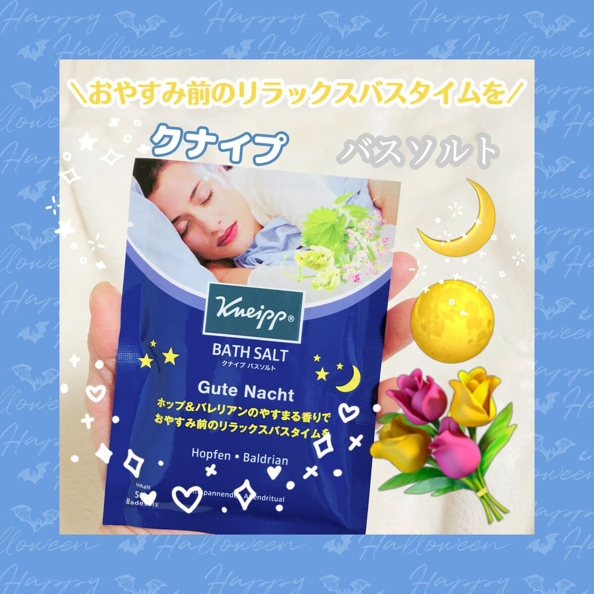 グーテナハトバスソルトホップ&バレリアンの香り・睡眠の質が上がると聞き気になっていたときにlipsで見つけ購入。・浴槽に入れる前は香りが強すぎて不安になったが、入れて混ざるといい香りで癒された。・お湯の色が結構な青さになって驚いた。着色料はい...