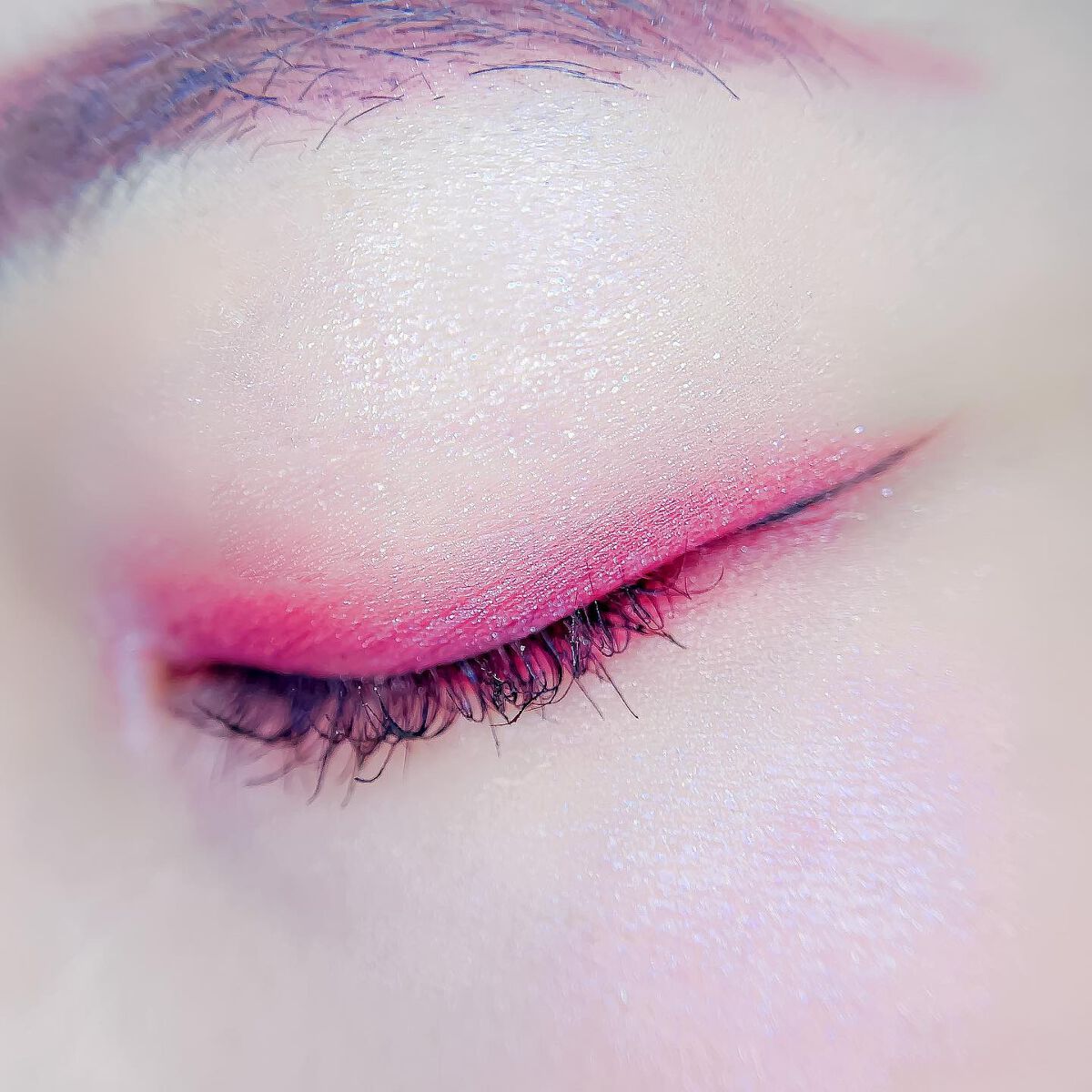 ピンクにグレージュも良いですね👌💗 今日は可愛らしい感じにしてみました💕 上下瞼黒目〜目頭側にラメを塗ってキラキラさせております🤩 目尻はマットのピンクを濃いめに重ねて💗 グレージュのアイライナーと相性◎
