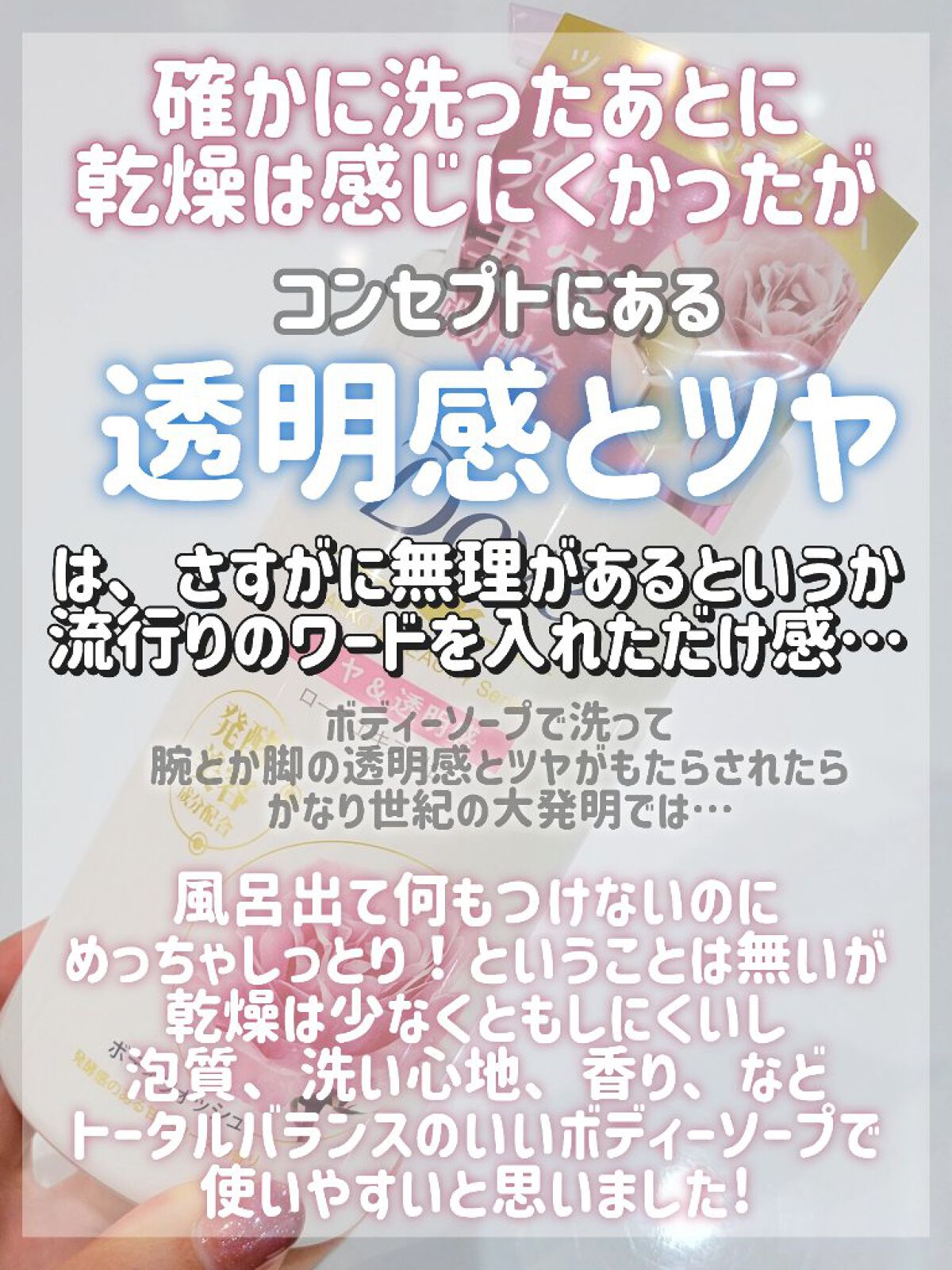 | フローラル系の爽やかで清潔感のある香り。洗ったあとのお肌は柔らかくツルツル | 詳細を見る | |