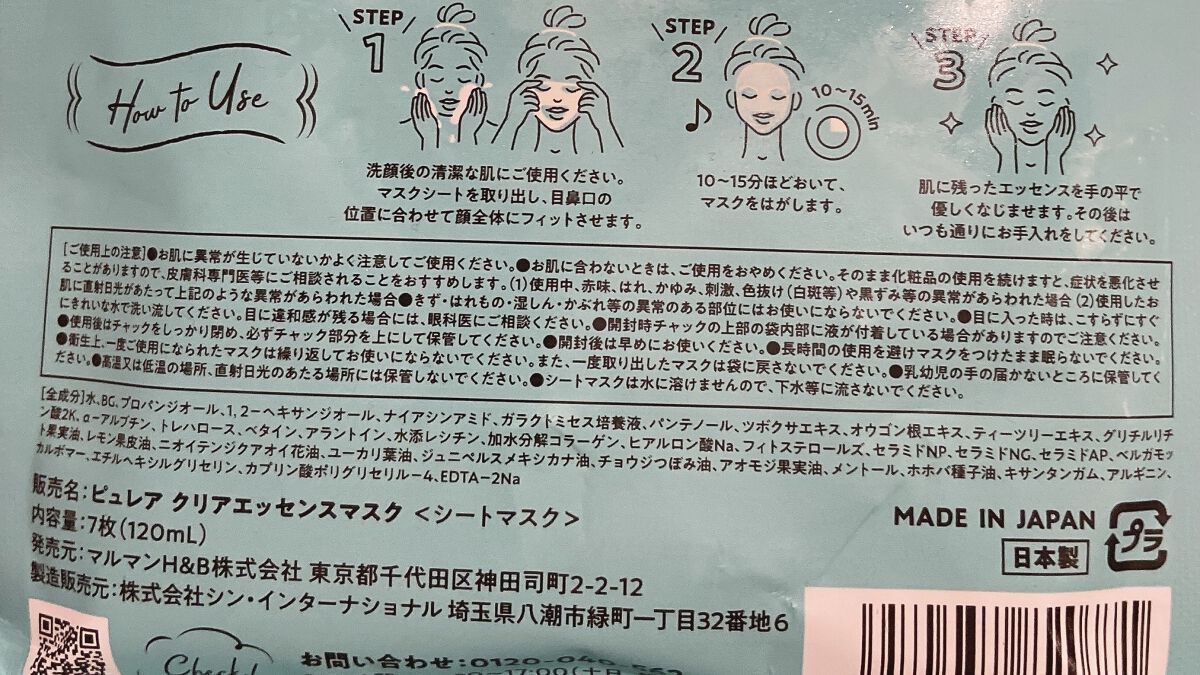 ピュレア ホワイトライスエッセンスマスク | 660円 |