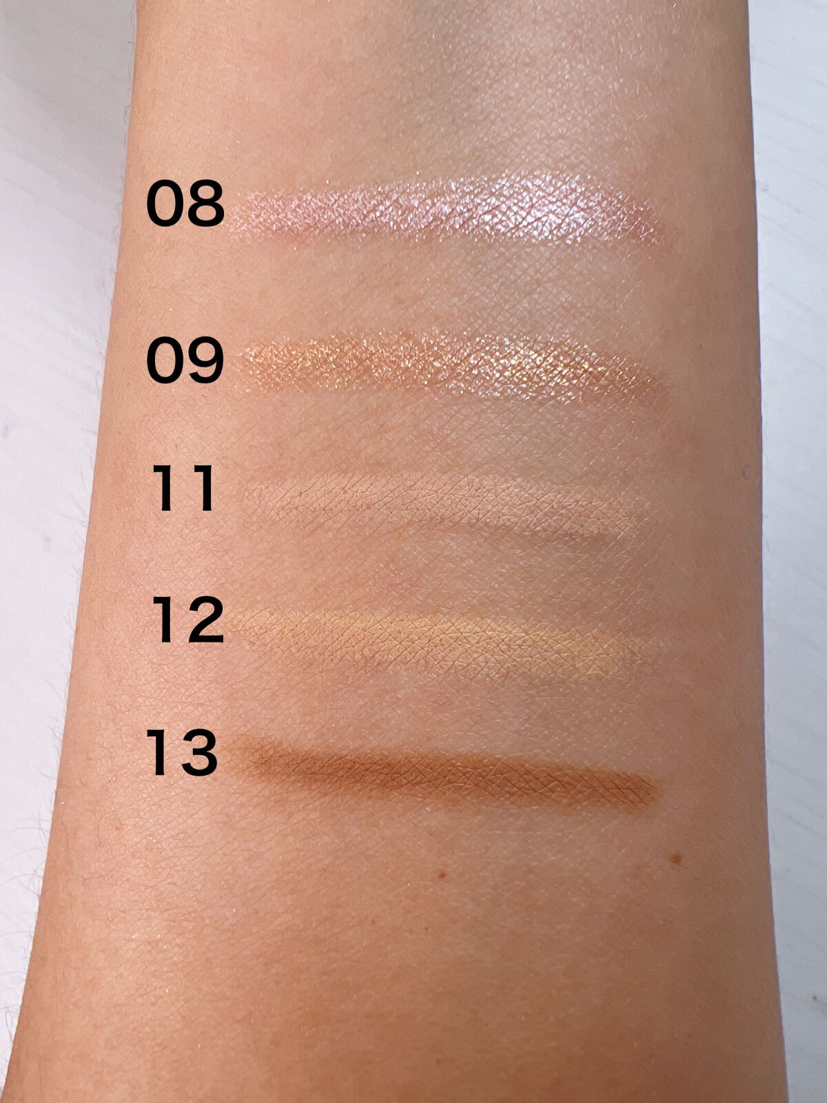- <01 ノワール> 黒酸化鉄、トリメチルシロキシケイ酸、イソドデカン、シクロペンタシロキサン、ポリエチレン、合成ワックス、マイカ、セレシン、カンデリラろう、ポリイソブテン、ポリヒドロキシステアリン酸、ジメチコン、レシチン、パルミチン酸エチルヘキシル、イソステアリン酸、ミリスチン酸イソプロピル、カプリル酸グリセリル、カプリリルグリコール、ポリリシノレイン酸ポリグリセリル-3 <02 ジャズ> トリメチルシロキシケイ酸、イソドデカン、シクロペンタシロキサン、ポリエチレン、合成ワックス、セレシン、(ビニルジメチコン/メチコンシルセスキオキサン)クロスポリマー、キャンデリラロウ、ポリイソブテン、ポリヒドロキシステアリン酸、レシチン、パルミチン酸エチルヘキシル、イソステアリン酸、ミリスチン酸イソプロピル、カプリル酸グリセリル、カプリリルグリコール、ポリリシノレイン酸ポリグリセリル-3、酸化スズ、酸化鉄、マイカ、酸化チタン <03 ローズブラウン> トリメチルシロキシケイ酸、イソドデカン、赤酸化鉄、シクロペンタシロキサン、ポリエチレン、マイカ、黒酸化鉄、合成ワックス、酸化チタン、黄色酸化鉄、セレシン、カンデリラろう、ステアリン酸亜鉛、ポリイソブテン、ポリヒドロキシステアリン酸、レシチン、パルミチン酸エチルヘキシル、イソステアリン酸、ミリスチン酸イソプロピル、カプリル酸グリセリル、カプリリルグリコール、ポリリシノレイン酸ポリグリセリル-3、ジメチコン <04 メローブラウン> トリメチルシロキシケイ酸、イソドデカン、シクロペンタシロキサン、ポリエチレン、ホウケイ酸(Ca/チタン)、合成ワックス、セレシン、ステアリン酸亜鉛、キャンデリラロウ、酸化スズ、ポリイソブテン、ポリヒドロキシステアリン酸、ジメチコン、レシチン、パルミチン酸エチルヘキシル、イソステアリン酸、ミリスチン酸イソプロピル、カプリル酸グリセリル、カプリリルグリコール、ポリリシノレイン酸ポリグリセリル-3、酸化鉄、マイカ、酸化チタン <05 ソウルブラウン> トリメチルシロキシケイ酸、シクロペンタシロキサン、イソドデカン、ポリエチレン、マイカ、酸化チタン、黄色酸化鉄、赤酸化鉄、合成ワックス、黒酸化鉄、合成金雲母、セレシン、カンデリラろう、ポリイソブテン、ジメチコン、ポリヒドロキシステアリン酸、レシチン、パルミチン酸エチルヘキシル、イソステアリン酸、ミリスチン酸イソプロピル、カプリル酸グリセリル、カプリリルグリコール、ポリリシノレイン酸ポリグリセリル-3 <06 チョコムース> トリメチルシロキシケイ酸、シクロペンタシロキサン、イソドデカン、ポリエチレン、酸化チタン、マイカ、赤酸化鉄、合成ワックス、黄色酸化鉄、黒酸化鉄、合成金雲母、セレシン、カンデリラろう、ステアリン酸亜鉛、ポリイソブテン、ポリヒドロキシステアリン酸、レシチン、パルミチン酸エチルヘキシル、イソステアリン酸、ミリスチン酸イソプロピル、酸化スズ、カプリル酸グリセリル、カプリリルグリコール、ジメチコン、ポリリシノレイン酸ポリグリセリル-3 <07 ローズバーン> トリメチルシロキシケイ酸、シクロペンタシロキサン、マイカ、イソドデカン、ポリエチレン、酸化チタン、合成ワックス、黄色酸化鉄、赤酸化鉄、セレシン、黒酸化鉄、赤色201号、カンデリラろう、ポリイソブテン、ジメチコン、ポリヒドロキシステアリン酸、レシチン、パルミチン酸エチルヘキシル、イソステアリン酸、ミリスチン酸イソプロピル、カプリル酸グリセリル、カプリリルグリコール、ポリリシノレイン酸ポリグリセリル-3 <08 エンジェル> トリメチルシロキシケイ酸、シクロペンタシロキサン、合成フルオロフロゴパイト、ポリエチレン、イソドデカン、合成ワックス、セレシン、ステアリン酸亜鉛、キャンデリラロウ、ポリイソブテン、ポリヒドロキシステアリン酸、ジメチコン、レシチン、パルミチン酸エチルヘキシル、イソステアリン酸、ミリスチン酸イソプロピル、カプリル酸グリセリル、カプリリルグリコール、ポリリシノレイン酸ポリグリセリル-3、マイカ、酸化チタン、酸化鉄、カルミン <09 ローズゴールド> トリメチルシロキシケイ酸、シクロペンタシロキサン、イソドデカン、ホウケイ酸(Ca/チタン)、ポリエチレン、合成ワックス、合成フルオロフロゴパイト、セレシン、ステアリン酸亜鉛、キャンデリラロウ、ポリイソブテン、ポリヒドロキシステアリン酸、レシチン、パルミチン酸エチルヘキシル、イソステアリン酸、ミリスチン酸イソプロピル、酸化スズ、カプリル酸グリセリル、カプリリルグリコール、ポリリシノレイン酸ポリグリセリル-3、ジメチコン、マイカ、酸化チタン、酸化鉄、カルミン <10 ウェディングピーチ> トリメチルシロキシケイ酸、シクロペンタシロキサン、ホウケイ酸(Ca/チタン)、ポリエチレン、イソドデカン、マイカ、合成ワックス、合成金雲母、赤酸化鉄、酸化チタン、セ