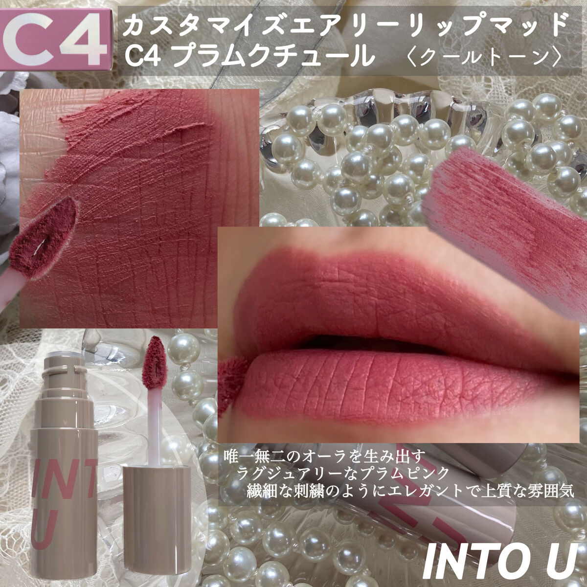 - INTO Uのスター商品でもある「泥リップ」を更に進化させ、より軽やかで、 より空気感のあるぼかしメイクを演出できるエアリーマッドリップを開発。 付け心地は軽やかでありながら、通常の泥リップよりもしっとり・ふんわり感が強く、「荒れにくい・乾燥しにくい」だけでなく、色持ちしつつ、もちもちなぼかしリップを綺麗に演出。 C(クールトーン)、N(ニュートラルトーン)、W(ウォームトーン)の3タイプにカラー分けしており、あなたにピッタリなカラーがすぐに見つかる。 奇麗なレイヤリングを叶え、好みに合わせたオリジナリティ溢れるカスタマイズカラーを進化した”エア泥リップ”でお楽しみください。