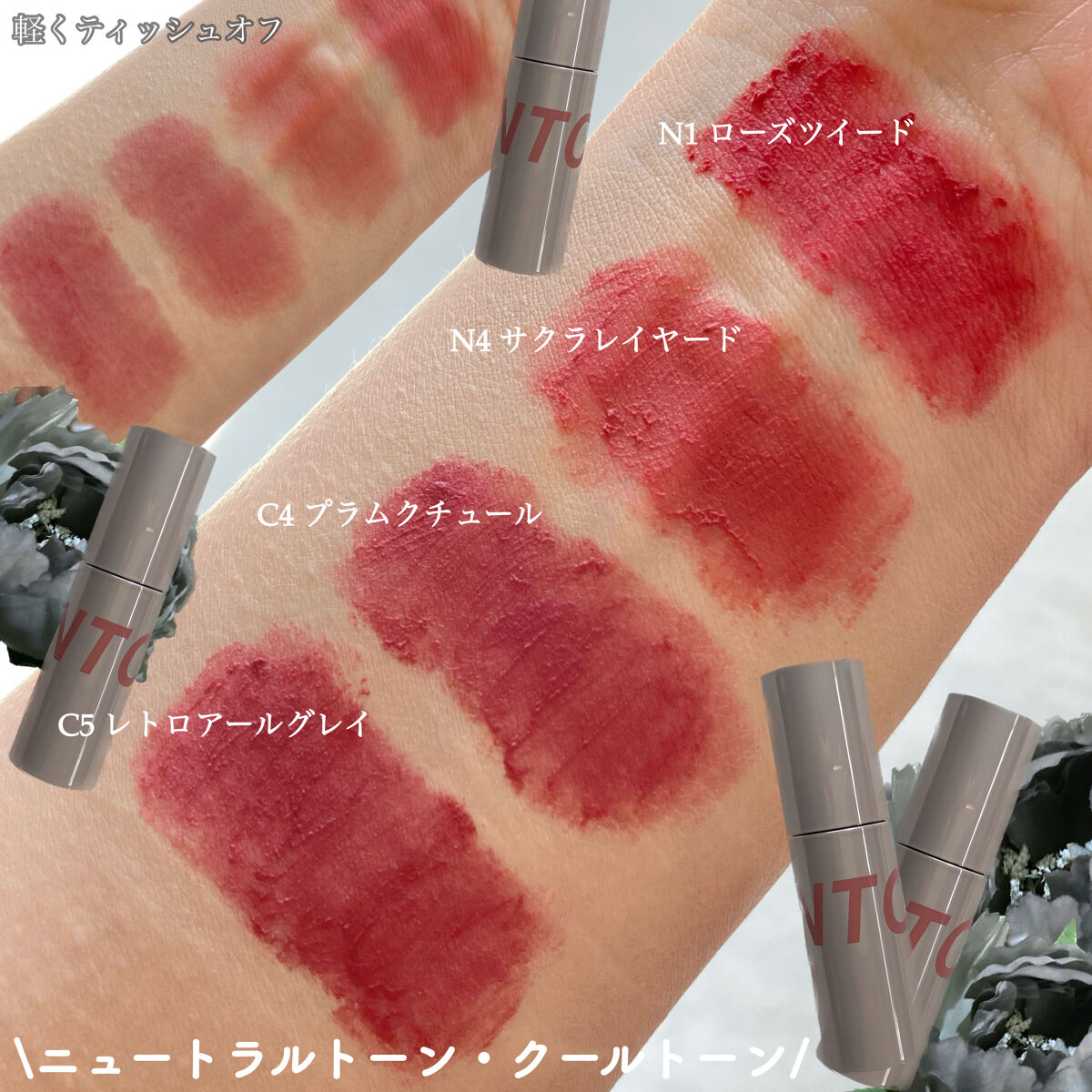 \INTOUカスタマイズエアリーリップマッド/C1エフォートレスワインC4 プラムクチュールC5 レトロアールグレイN1 ローズツイードN4 サクラレイヤードW1 ポルカドットピーチW2レッチリW3 モードスカーレットW4 テディブラウンW5...
