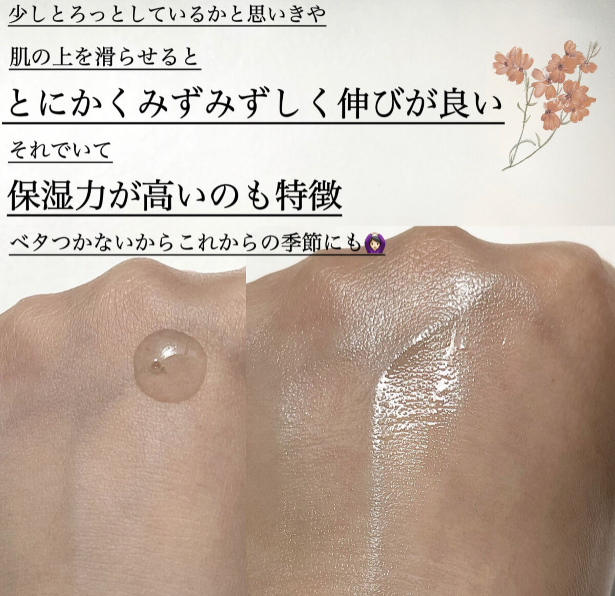 | 軽い使い心地ですが、べたつかずしっとりとお肌を潤してくれます。 | 詳細を見る |