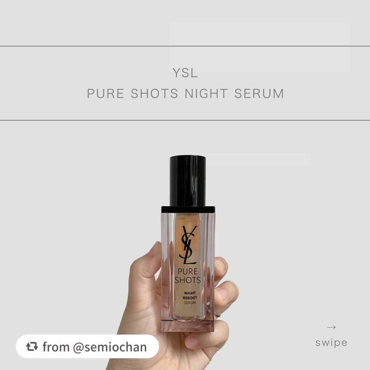 - YSL No.1美容液が進化。 翌朝出会う。8時間熟睡の美肌。 先進技術により、パワフルなボタニカルを約20倍*配合。 深夜24時から始まる、たったの1時間の「肌のピークタイム」に着目し、まるで8時間熟睡したように。 なめらかで透明感のある毛穴レスな肌印象へ。 *ピュアショット ナイトセラムとの比較 ※ 新製品「ピュアショット ナイト リチャージセラム」と旧製品「ピュアショット ナイトセラム」はサイズ規格が異なります。新製品のレフィルは旧製品のケースに入りませんので、ご留意ください。