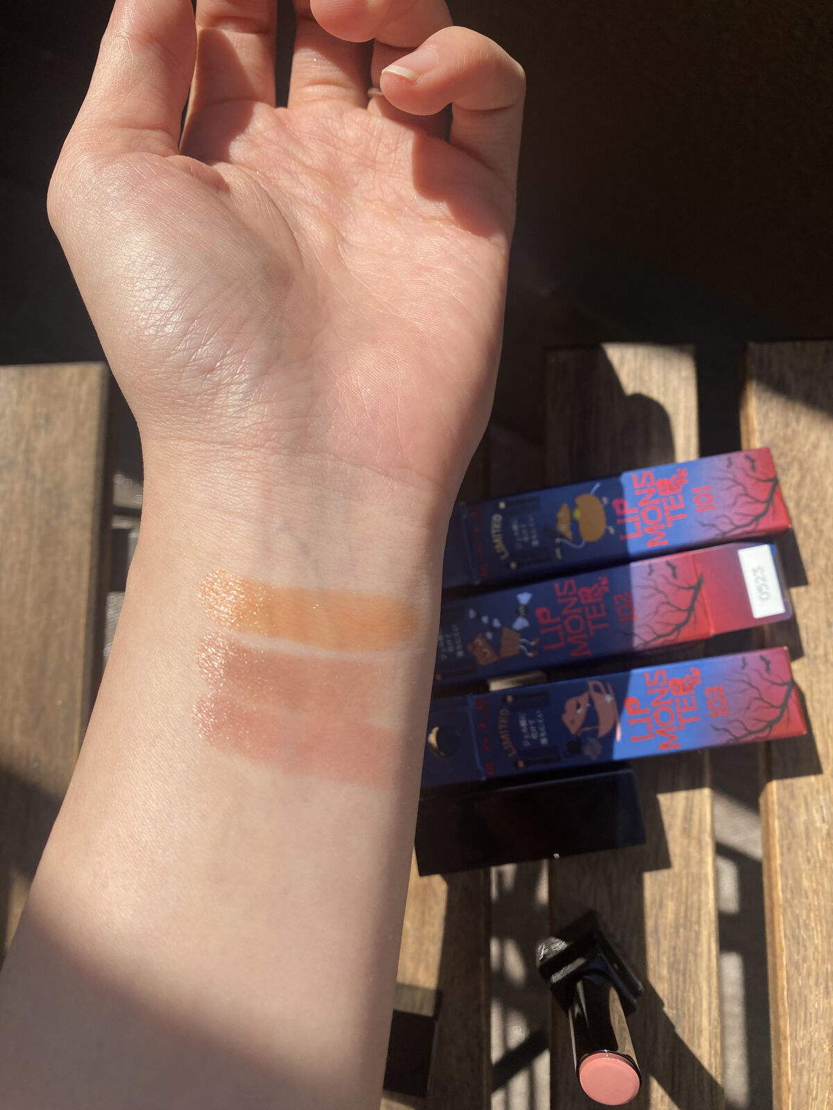 大人なブラウンカラー。ブラウンだけどピンクブラウンっぽくもみえる血色感の良いカラー🤎 ナチュラルな仕上がりで普段使いにも良いと思います◎ リップモンスターはティントじゃないのに色残り抜群◎その秘密は、独自技術の密着ジェル膜唇から蒸発する水分を活用して密着ジェル膜に変化するから、長時間の色持ちを実現!
