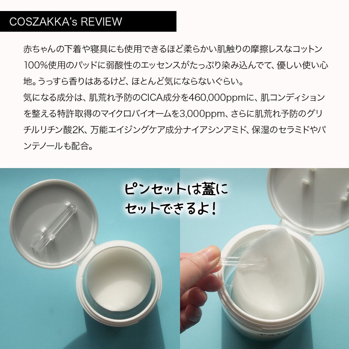 - 集中整肌と健康的な肌バランスのためのシカXバイオームトナーパッド。ツボクサエキス*46%配合の整肌エッセンスベースで肌のコンディションを助けるダーマパッドです。肌の整肌&pHバランスをケア、次に使用する製品の水分度/肌のキメ/メイクの輝き効果のサポートができます。*整肌成分