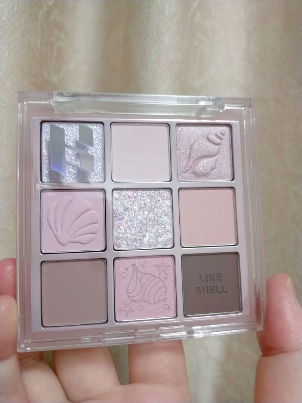 アプリコットカラーのパレット✨ マットからシマー、グリッターと様々なテクスチャーで色んなメイクが楽しめます✨ ふんわりした粉質で、淡い発色のカラーでやわらかい印象の目元に☺️ 捨て色なしなのも嬉しい✨