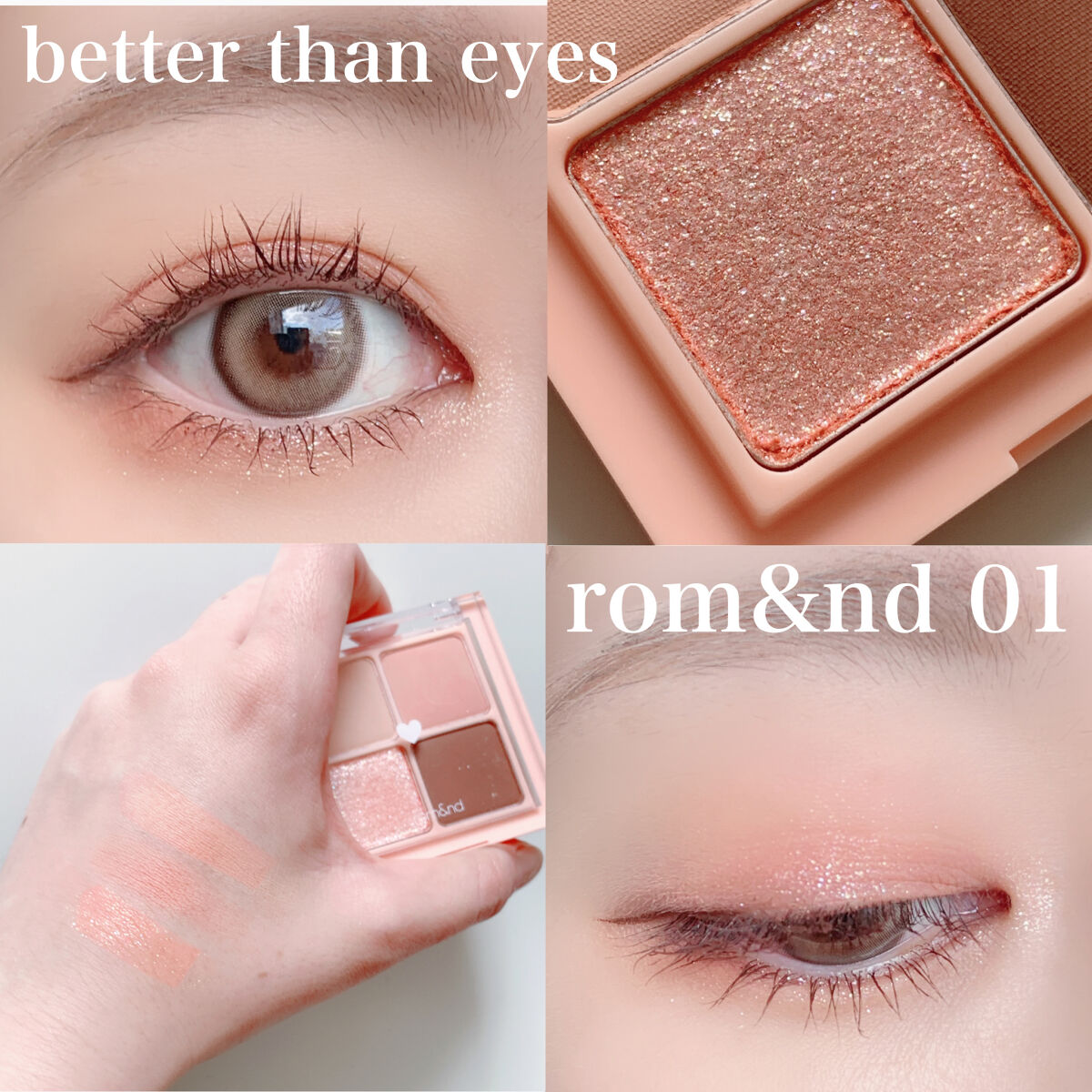 やっぱり安定ロムアンド🌟結局この4色アイシャドウが1番好きです🤦🏻♀️私はドライマンゴーチューリップのコーラルラメが特に大好きでギラギラ過ぎないのにめちゃくちゃ可愛い発色だからここばっかり使っちゃう😂ドライローズのラメもシャンパンゴールドに...