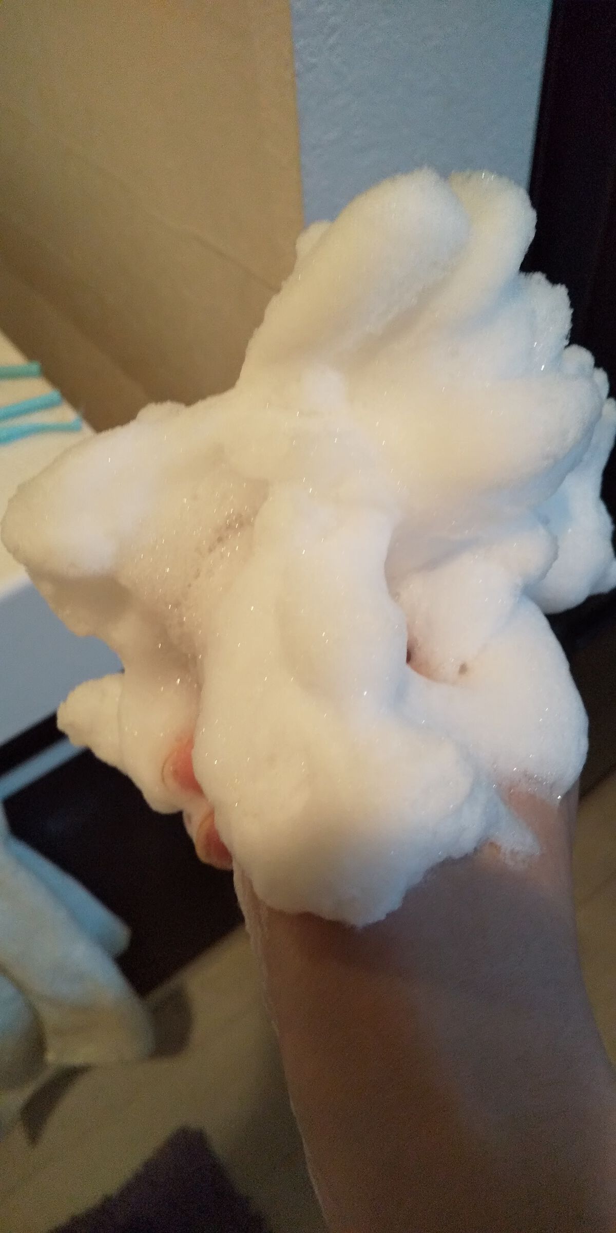 使用感:汚れをすっきり洗い落として、つっぱりがちな肌も、しっとりとした洗い上がりに。 「ビタミンE誘導体*9」配合。洗顔後の肌を守り、肌荒れを防ぐ”特濃もっちり泡”が特徴。 テクスチャーはこてっとした感じのクリームです。