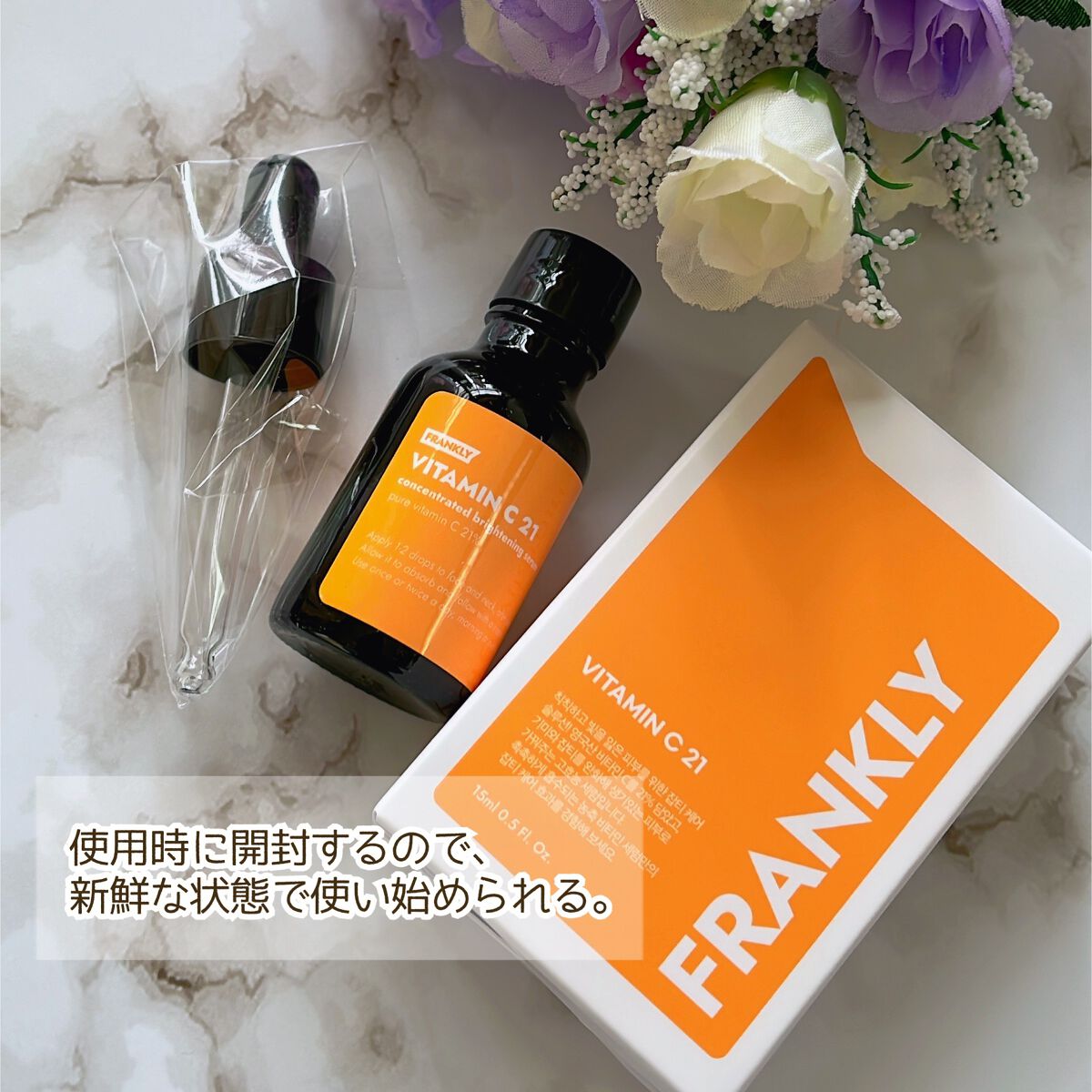 - 乾燥によりくすみがちな肌、透明感ケアにイギリス産の純粋ビタミンC(整肌成分)21% 使用方法: 1,洗顔後、さっぱりとした化粧水を使用し、ビタミンCセラムを2,3滴取って 頬や額など悩みの部位を中心に 円を描くようにマッサージしながら使用してください。 2,ビタミンCセラムは、 光が少なく涼しい場所で保管してください。 冷蔵保管の際は8~12度をお勧めします。 3,朝晩ともにご利用いただけますが、 日中の使用の際は日焼け止めなどを塗ってご利用ください。
