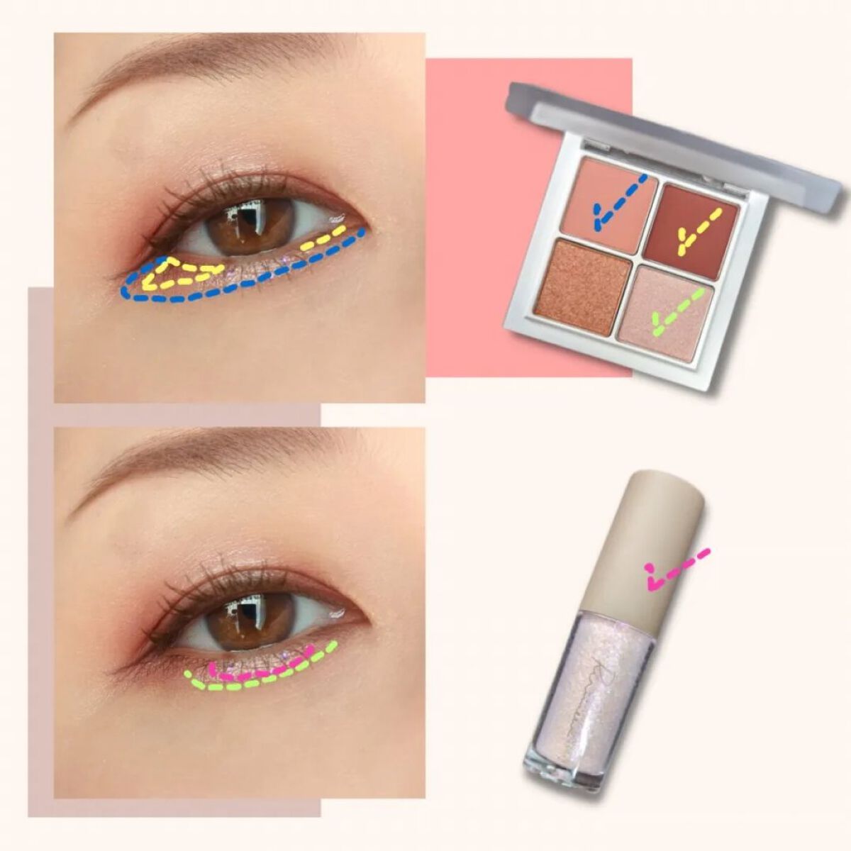 大人気のプロアイパレットから、 14 Atelier In Hannam 15 Spring Sunshine In Canvas 14はパステルっぽいパープルカラーがメインのパレット 15はコーラル感満載のザ・春!って感じのパレット