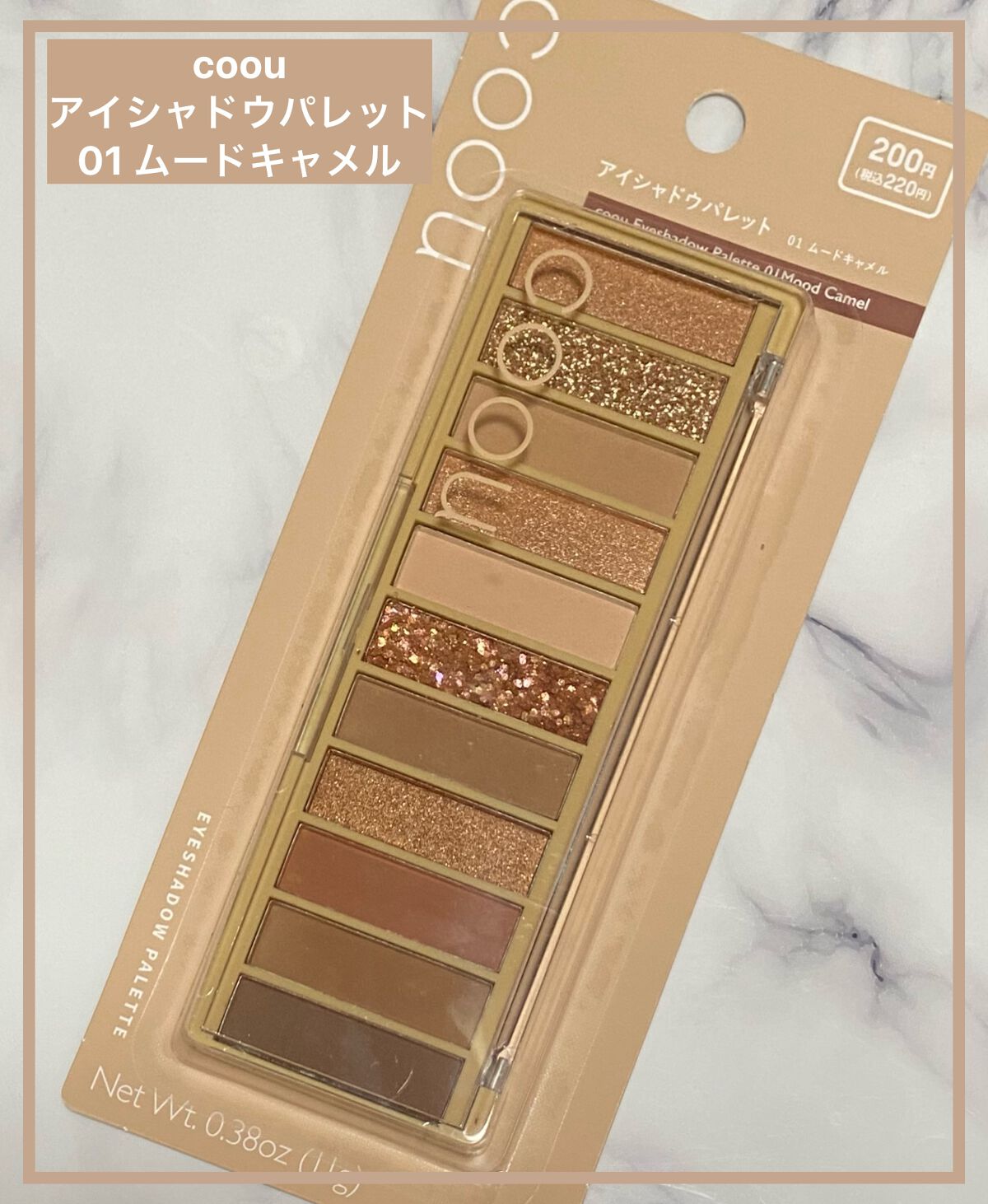 coouアイシャドウパレット01ムードキャメルの感想です。DAISOのブランドのアイシャドウパレットcoouは今のところ4種展開【使用感】・220円でカラー豊富だしラメが可愛い・塗りたては発色いいけど時間や擦ると取れやすい・細かいラメはまだい...