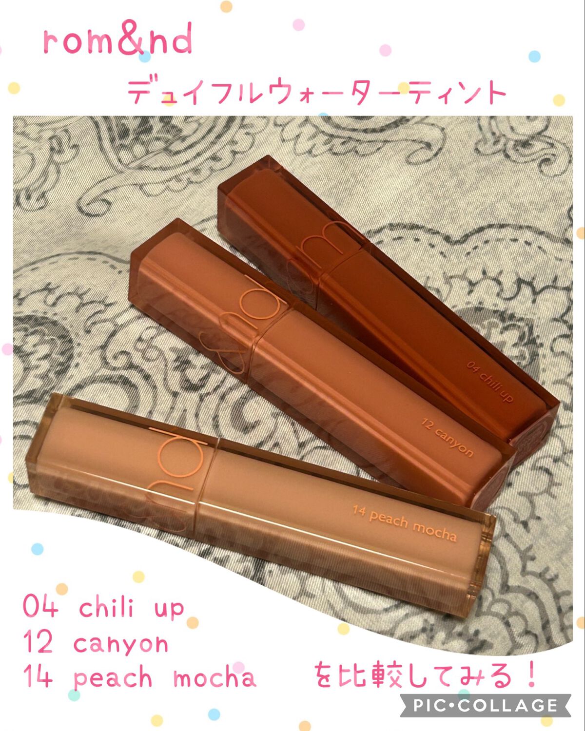 ⭐購入品紹介⭐rom&ndデュイフルウォーターティント12キャニオン14ピーチモカ(日本限定色)パッケージの色味と実際につけたときの色味が違うので口コミやテスターでの確認は必須です!最初にベージュと思ってキャニオンをネットで買って、赤じゃん!...