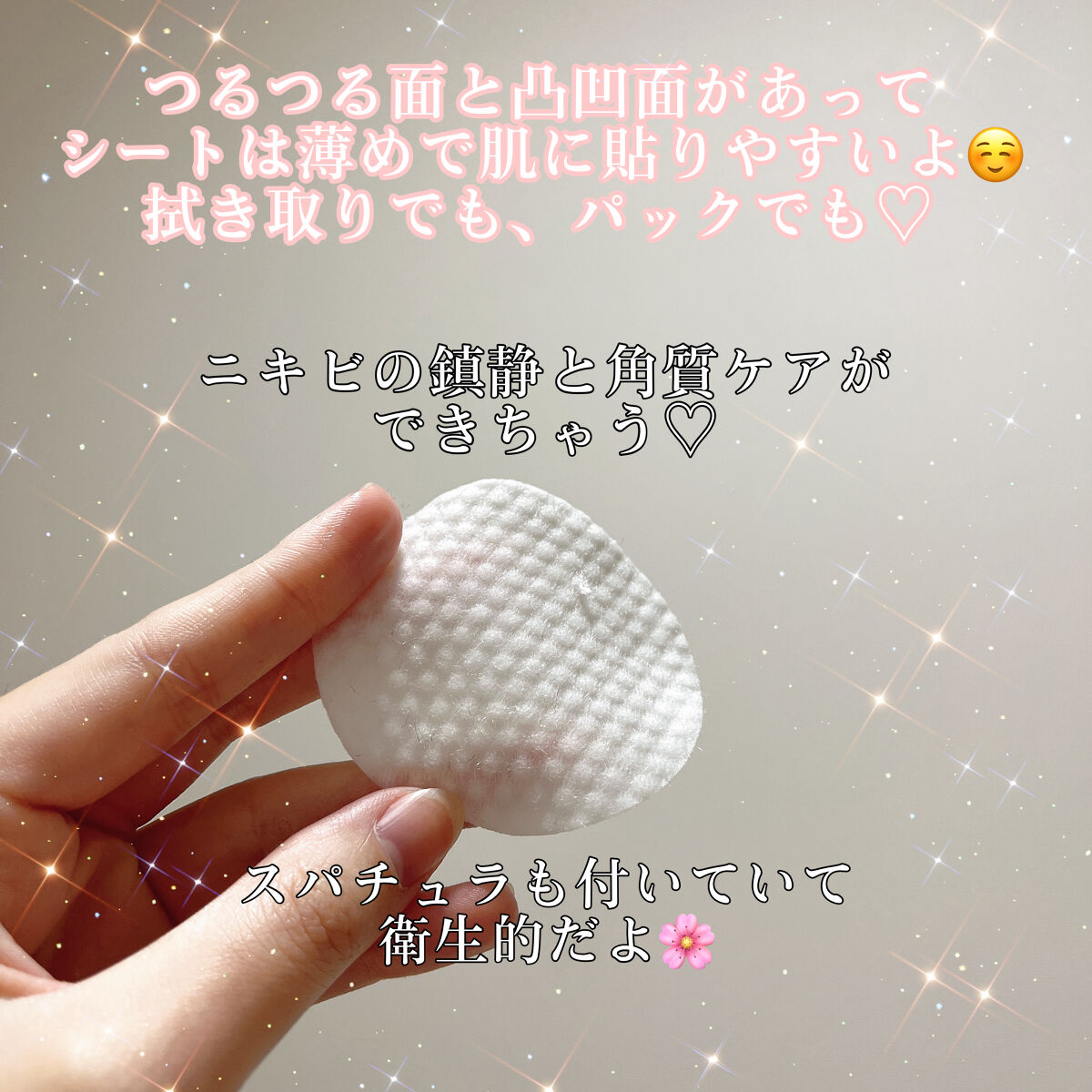 中身も優秀でパットにつるつる面と凸凹面があるから 用途に使い分けて使ってね🥹 悪いところそんなに見つからないけど、 保湿力がそんなにないこと、くらいかな。 でも保湿はほかで補えば大丈夫🥰 おすすめだから1度使ってみてほしい♡ 韓国スキンケア大好きでホイホイ買っちゃう🥺笑笑