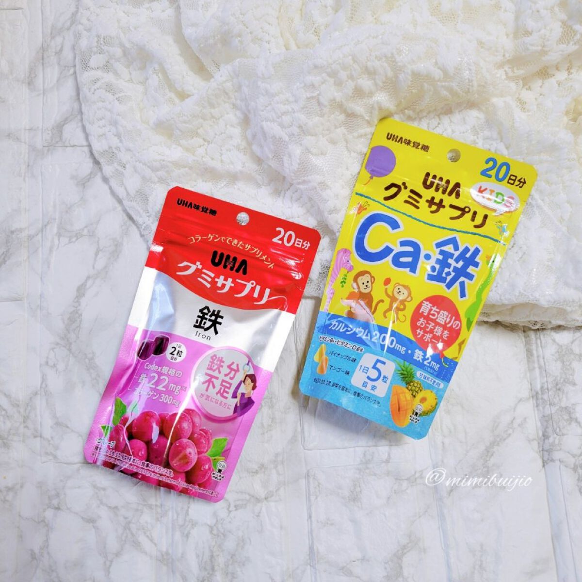 \親子で楽しむグミサプリ/1日2粒で、鉄10mgと葉酸240μg摂取することができる【UHAグミサプリ鉄&葉酸】鉄がとれる食べ物はなかなか苦手なものが多いので、美味しいグミで摂れるというのは嬉しいなと思いました。そしてキッズ用の【UHAグミサ...