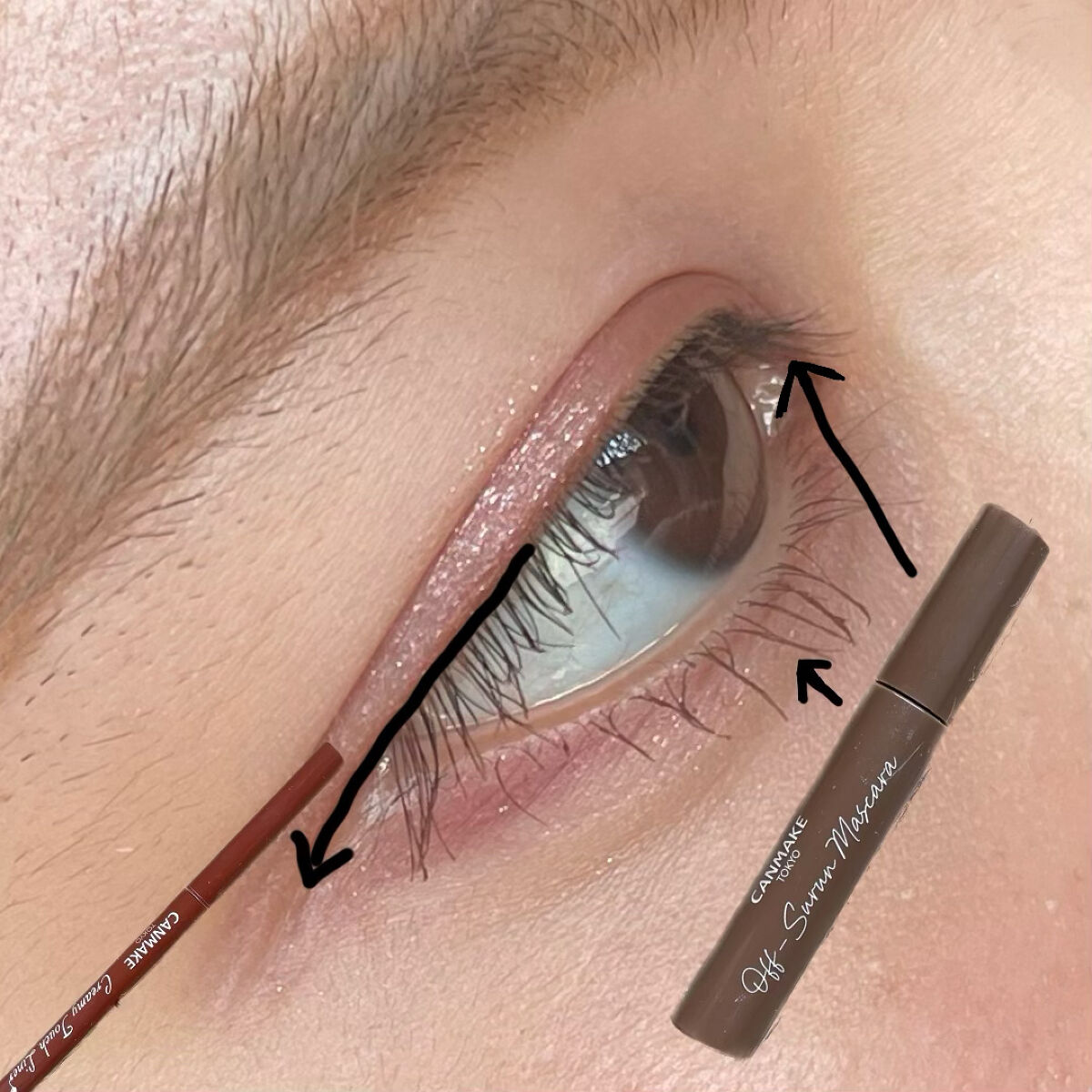 楓の目は下まぶたの目頭側に蒙古襞があって…。 でも、目頭にくの字に描くと目が寄って見えてしまう…。 蒙古襞を抹消するやり方を投稿してみました! #LIPS投稿アワードメイクハウツー #蒙古襞解消 #キャンメイク #クリーミータッチライナー