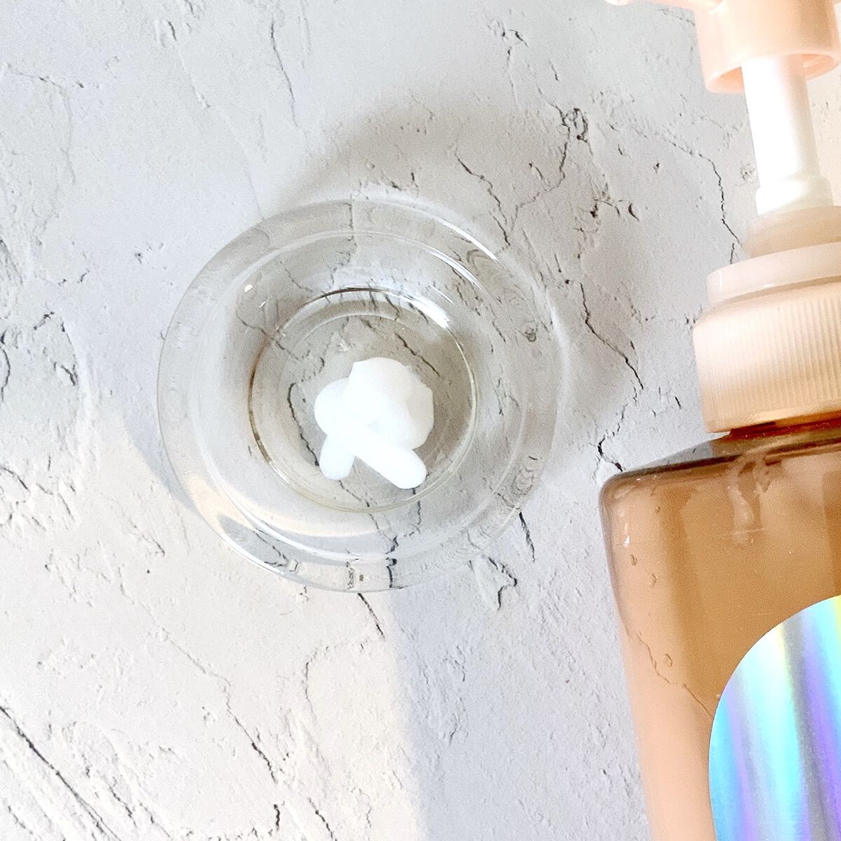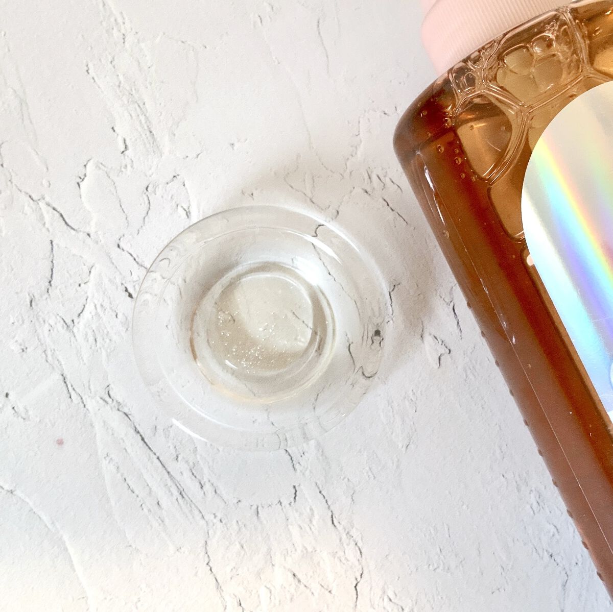 液体はあまりとろみを感じないサラッとしたテクスチャ。 伸ばしやすくて、スーッと馴染みますが、そのあとはペタペタせず不思議とサラサラに✨ ほんのりラメが入っててツヤ肌にもなる! トーンアップ血色アップを叶えてくれてこんなに良かったっけ? ボトルも相変わらずかわいいしテンションを上げてくれるのもいいな💗