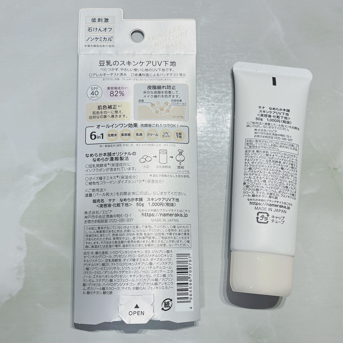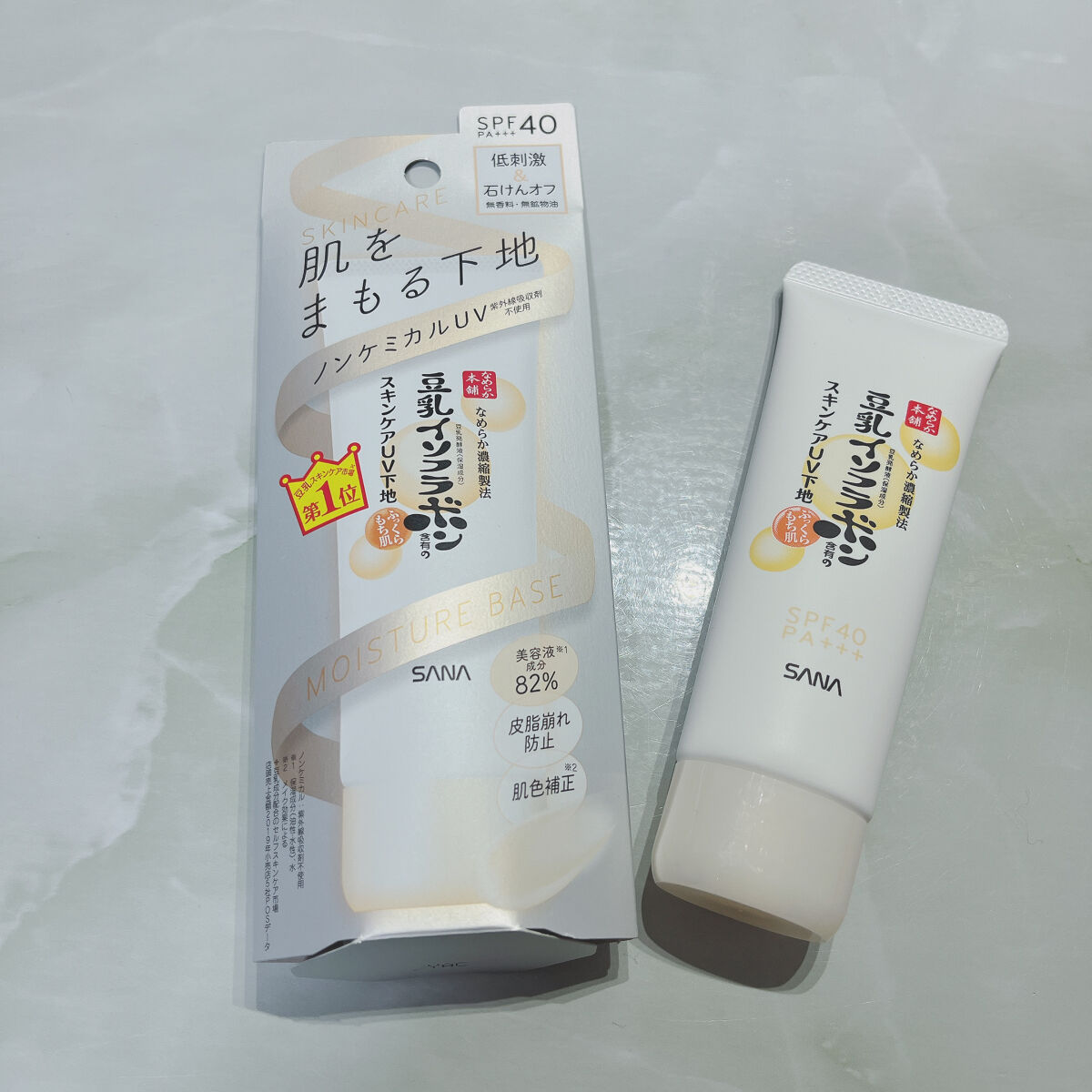 - <スキンケアUV下地> 豆乳のスキンケアUV下地。低刺激&ノンケミカル(紫外線吸収剤不使用)。肌色補正(メイク効果による)&皮脂崩れ防止。化粧水・美容液・乳液・クリーム・UVカット・化粧下地の1本6役。SPF40・PA+++。