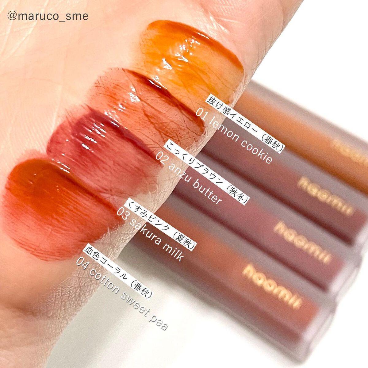 唇にしっかり定着してくれて、ほんと落ちにくい!!😳👏 食事をしても唇に血色感が残るので デートにもおすすめ🥰 しかも全色絶妙にかわいいカラー、、🤤❤️🔥 ブルベ夏のわたしは特に03,04がお気に入り!