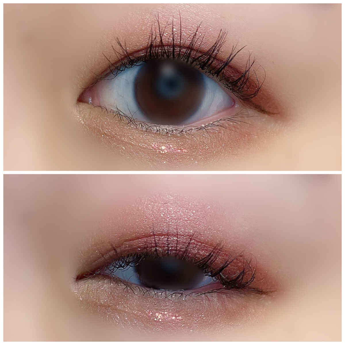 黄みの強いブラウンを使うとブルベの私はくすんで見えやすいので、赤みのあるブラウンを使いました! 涙袋はキラキラにしたいので、単色のCLIOプロ シングル シャドウを使いました💖