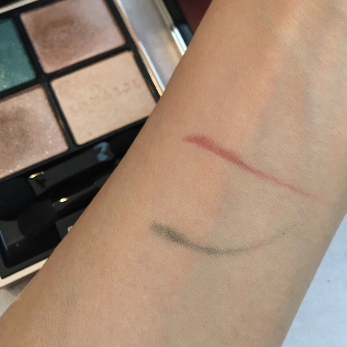 全体的に淡い色出しの中、ポイントになるのは右下のトップコート。他のカラーに重ねるとぐっと奥行きが出ます。 「328」は当初購入候補ではありませんでしたが、実際に触って、試してみるとモーヴ好きにはたまらないパレットで即決でした!