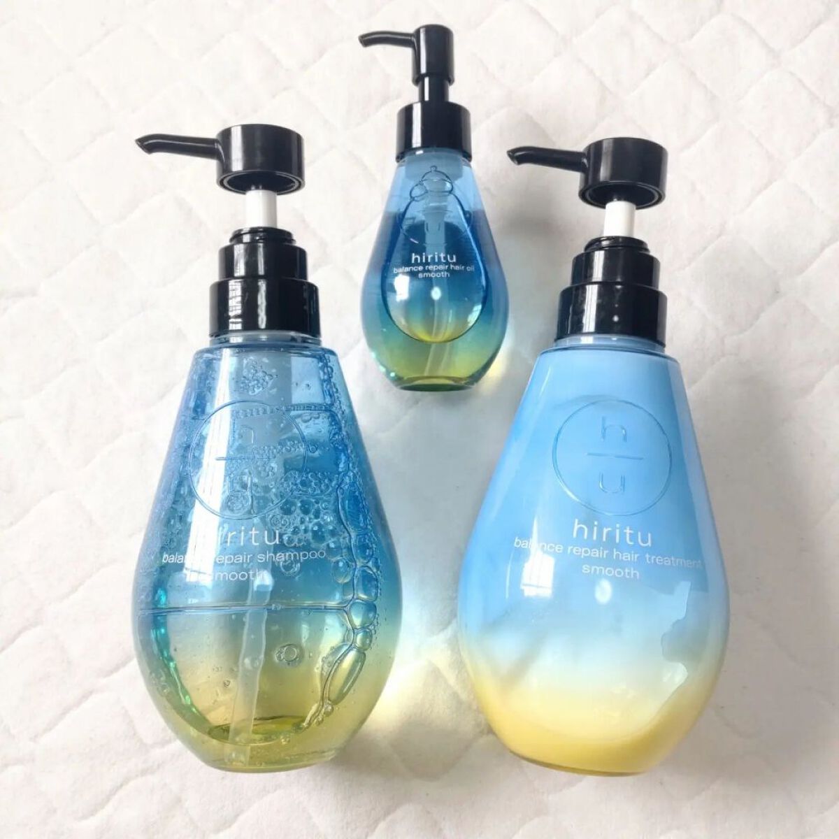 hirituヒリツ・バランスリペアヘアオイル スムース¥1,540・バランスリペアシャンプー/ヘアトリートメントモイスト¥121(しっとりとした仕上がり。パサつきや広がりやすい髪の毛に。ジャスミンとアプリコットを加えた香り。)・バランスリペア...