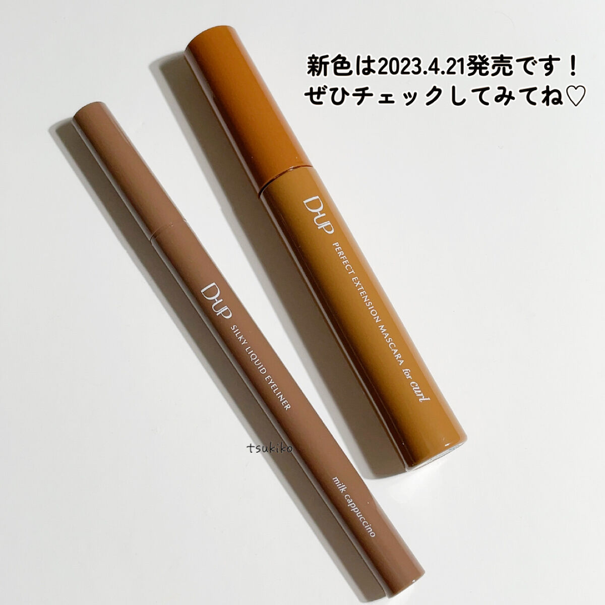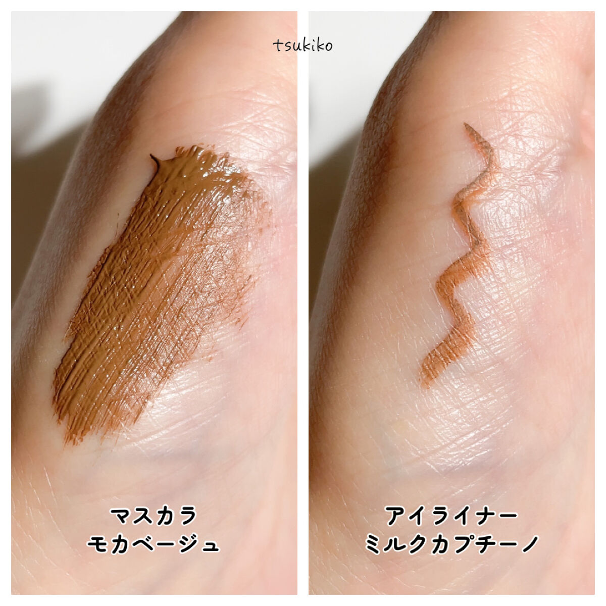 パーフェクトエクステンションマスカラ for カール マスカラ新色 『モカベージュ』 小さめブラシで小回り◎+カールブラシが目のカーブにフィットして塗りやすい🥰 シルキーリキッドアイライナー アイライナー新色 『ミルクカプチーノ』 目尻までかすれず滑らかに理想のラインが描けて、長時間キープ😘 王道ブラウンよりも、柔らかな存在感 やわらかい雰囲気を作りたいときはこれ😍