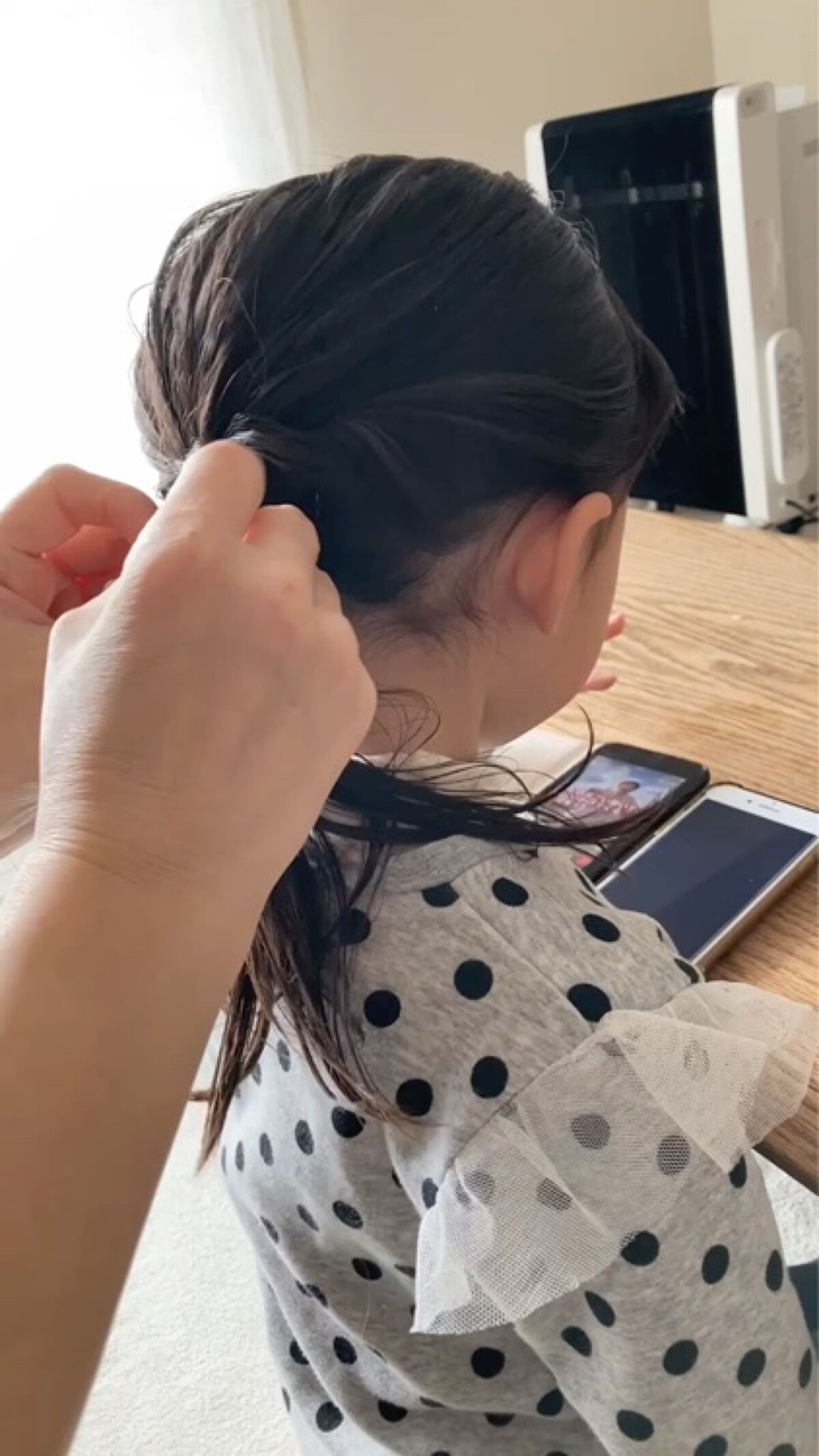 5歳娘のヘアアレンジ♡お花のヘアゴムに合わせたアレンジです😊三つ編みじゃなくて結んでいるだけだから簡単に出来ます🙆♀️✨細かく結んでいるのでしっかり引き出しても短い毛が出てきにくいです😊#ヘアーアレンジ#ヘアアレンジ#ヘアアレンジ動画#ヘア...