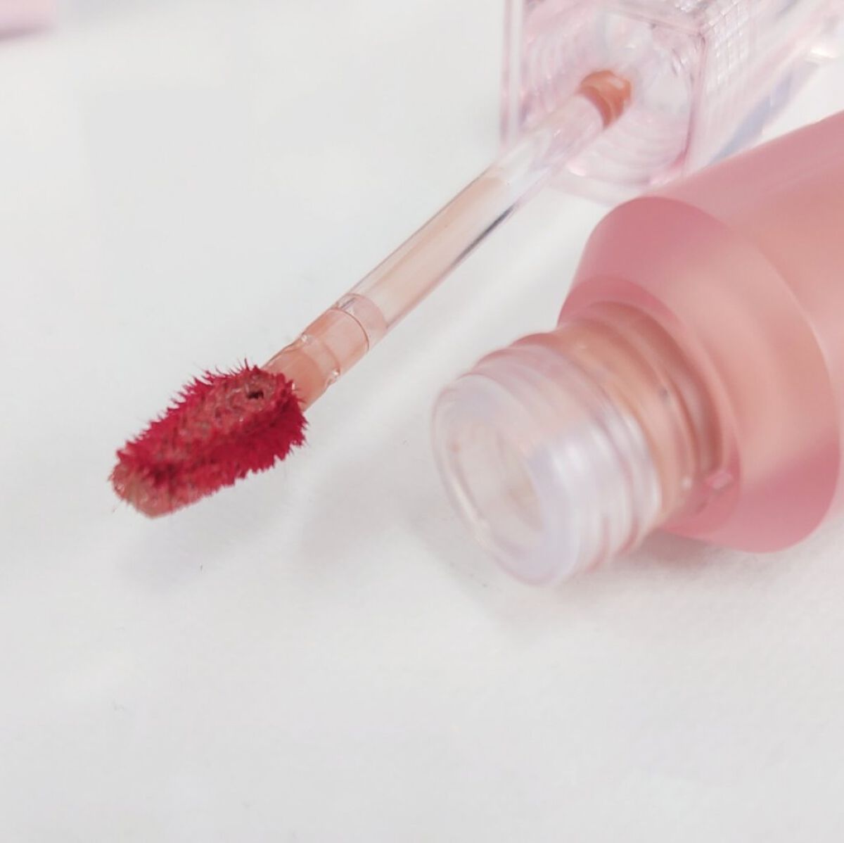 唇の軽く染み込んで、長時間クリアなキープ🙆🏻♀️ 色移りがしにくく、塗ったままのナチュラルなツヤ着色✨ 高い水分量と保湿成分配合で、しっとり保湿感を維持🫧 何度塗り重ねても濃くなりすぎず、クリアな血色感がある🥰 ツヤ系の嫌なべたつきが少なく、ティッシュオフするとより落ちにくい!! アプリケーターの中心に穴が空いた形で、液の付きすぎを防いでくれる🌹 唇の潤いも色持ちも良いので、長時間付けたての色がそのまま持続🌟 血色感と程よいツヤ感があり、ナチュラルメイクもすっぴんでも浮かない仕上がり🌈 パッケージも透明なキャップと、マットな本体がかわいい💖 落ちてきても汚さや乾燥がなく使用でき、新しい色味にも挑戦しやすい!!
