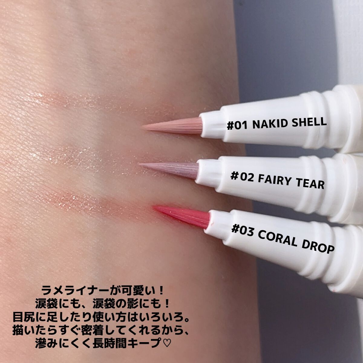 【目元にクールピンクの透明感✨️】HOLIKAHOLIKAグリッツアイライナー02FARIYTEARS韓国コスメブランド「ホリカホリカ」のアイライナー♪シアーなクールピンクのベースに微細ラメがたっぷりはいってるよ♡均一感のあるラメ感で、ギラギ...