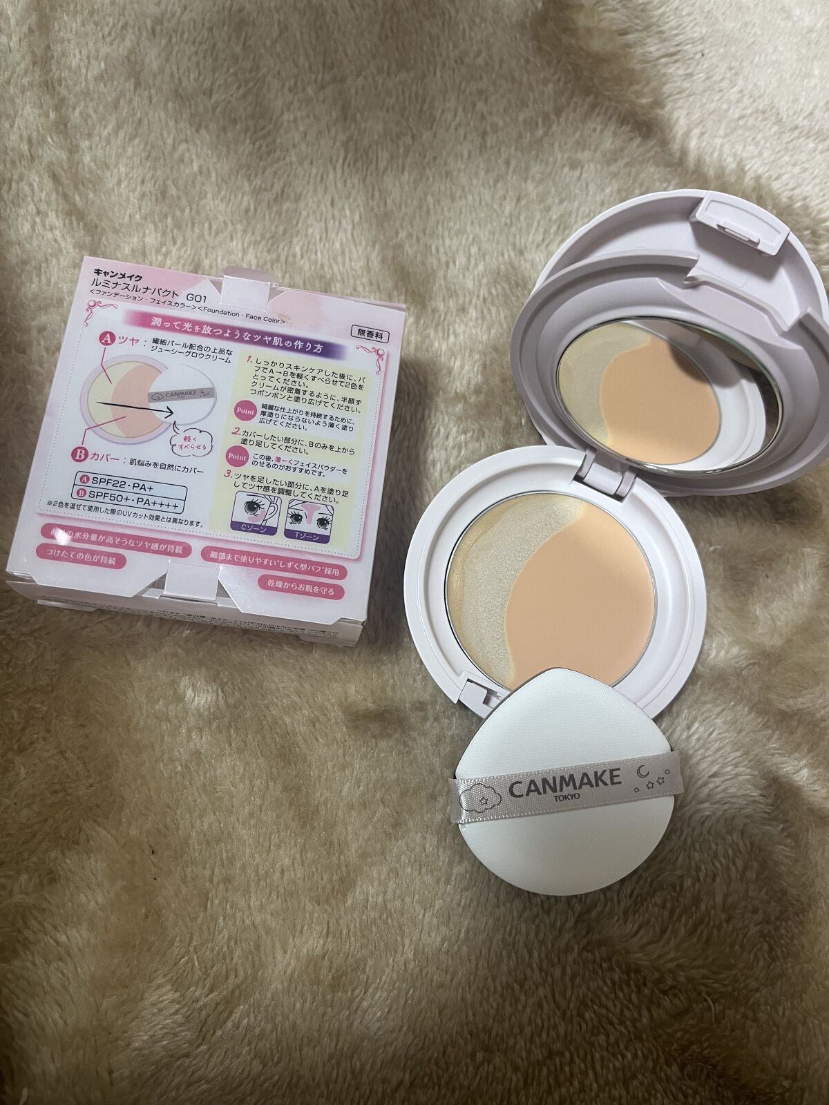 キャンメイクルミナスルナパクトG01ライトベージュSPF値も高く良い商品だなと思ったのですが密着度が弱い崩れやすさを感じました10代から20代初めの方が日焼け止めの代わりに使うくらいうすーく使うと綺麗かも✨使用料や組み合わせなどちょっと難しか...