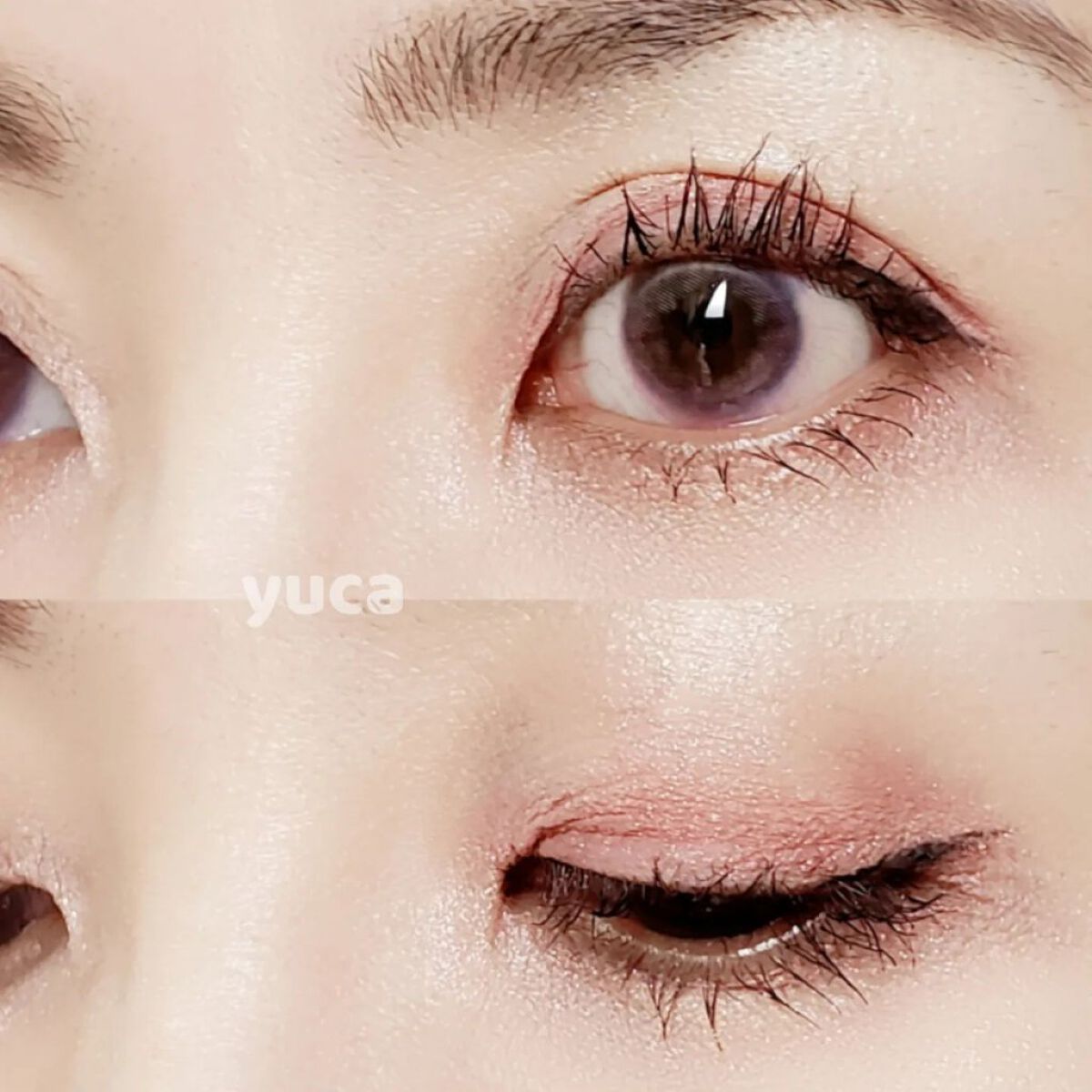 なんとなくだけど左側がブルベ寄り、右側がイエベ寄りの色味でニュートラルなパレットかなと思いました。 目元写真みると発色薄く見えるかなとおもいますが朝メイクして、直さず夜に撮ったのでこんな感じです。 カラコンはmimucoのブラウンフォンデュミムコのカラコンはどれも自然でかわいいです。